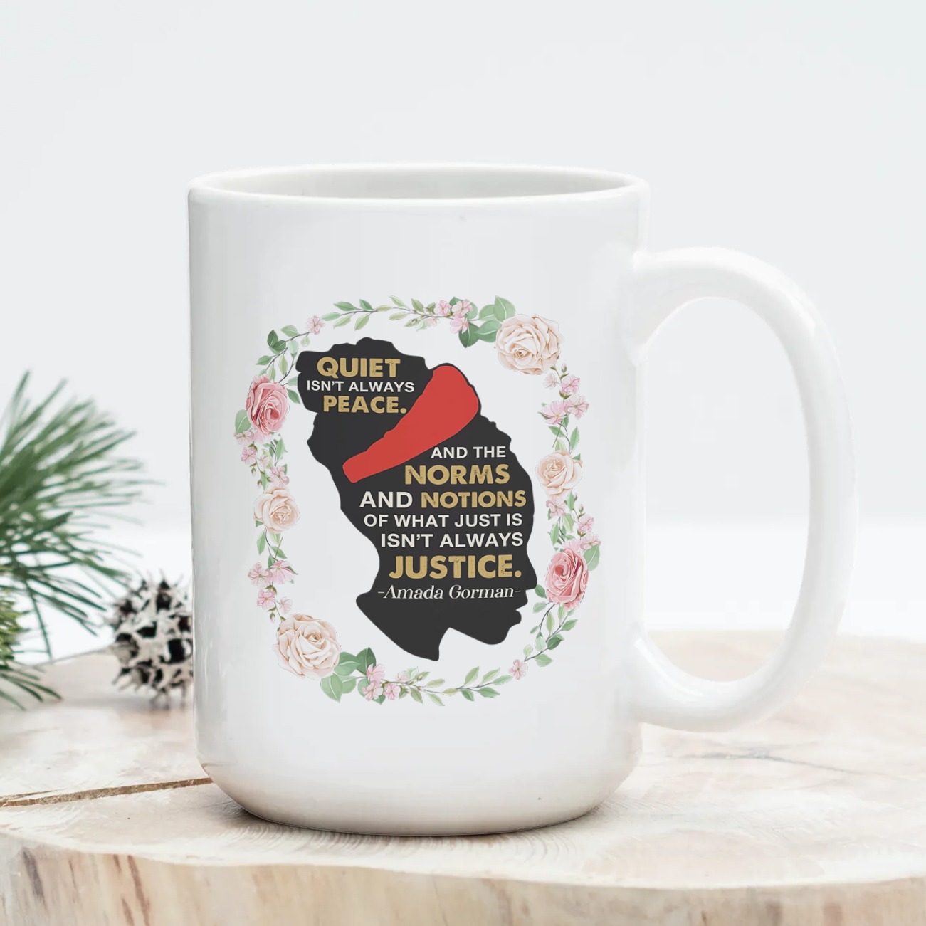 Let’s Shop Amanda Gorman Poetry The Hill We Climb Quiet Isn’t Always Peace Inauguration Poem Coffee Mug!