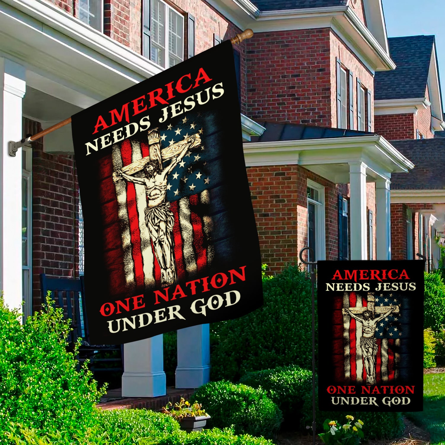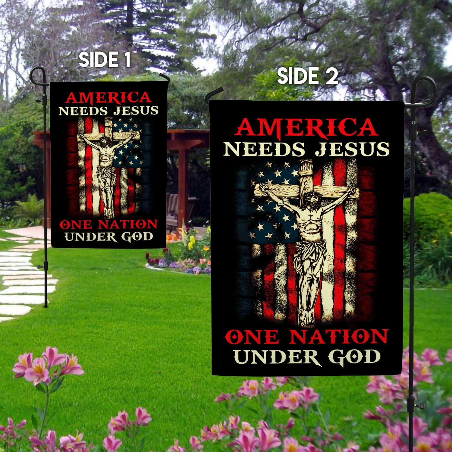 Let’s Shop America Needs Jesus One Nation Under God Outdoor Garden Flag – American Patriot Flag – America Needs Jesus Flag!