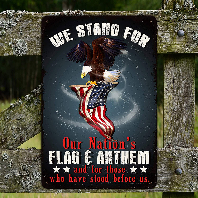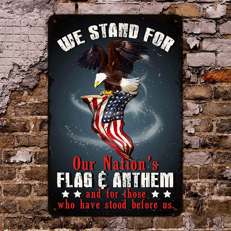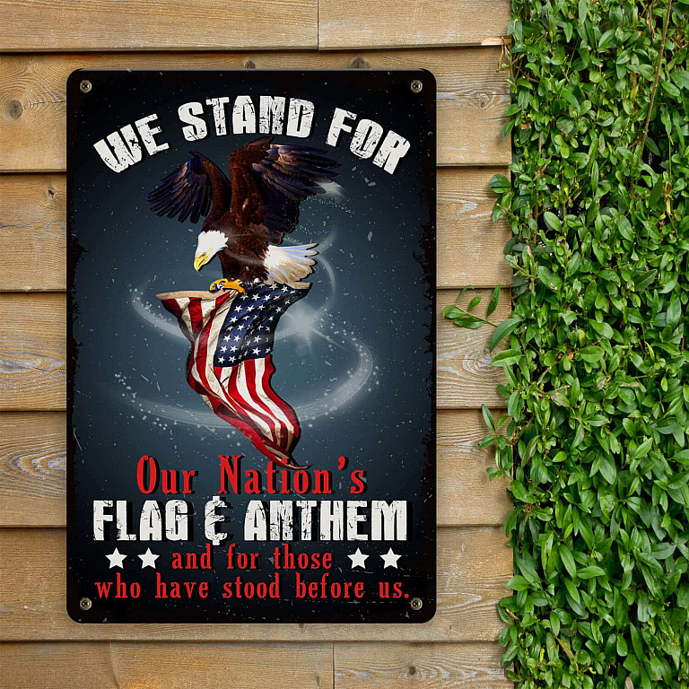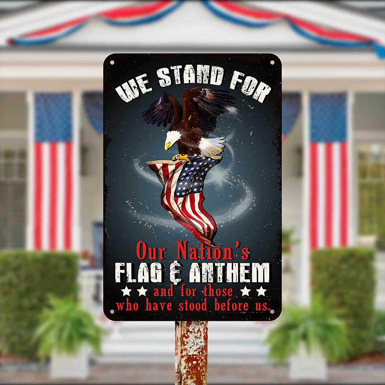 Let’s Shop We Stand For Our Nation’s Flag And Anthem Decorative Metal Sign – American Patriotic Indoor Outdoor Decor!