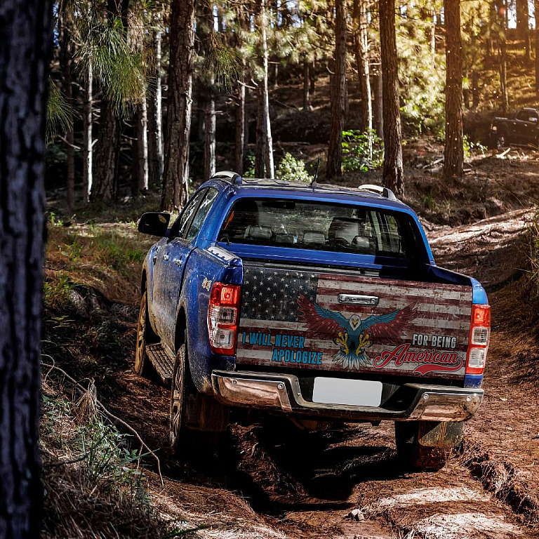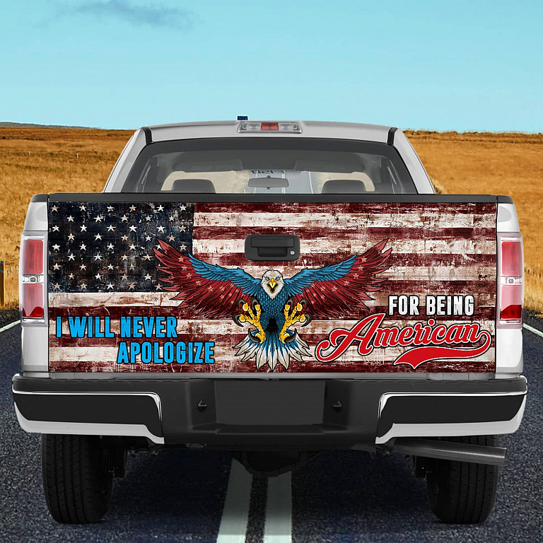 Let’s Shop I Will Never Apologize For Being American Eagle Truck Tailgate Decal Sticker Wrap – Proud American Vinyl Graphic Decal!