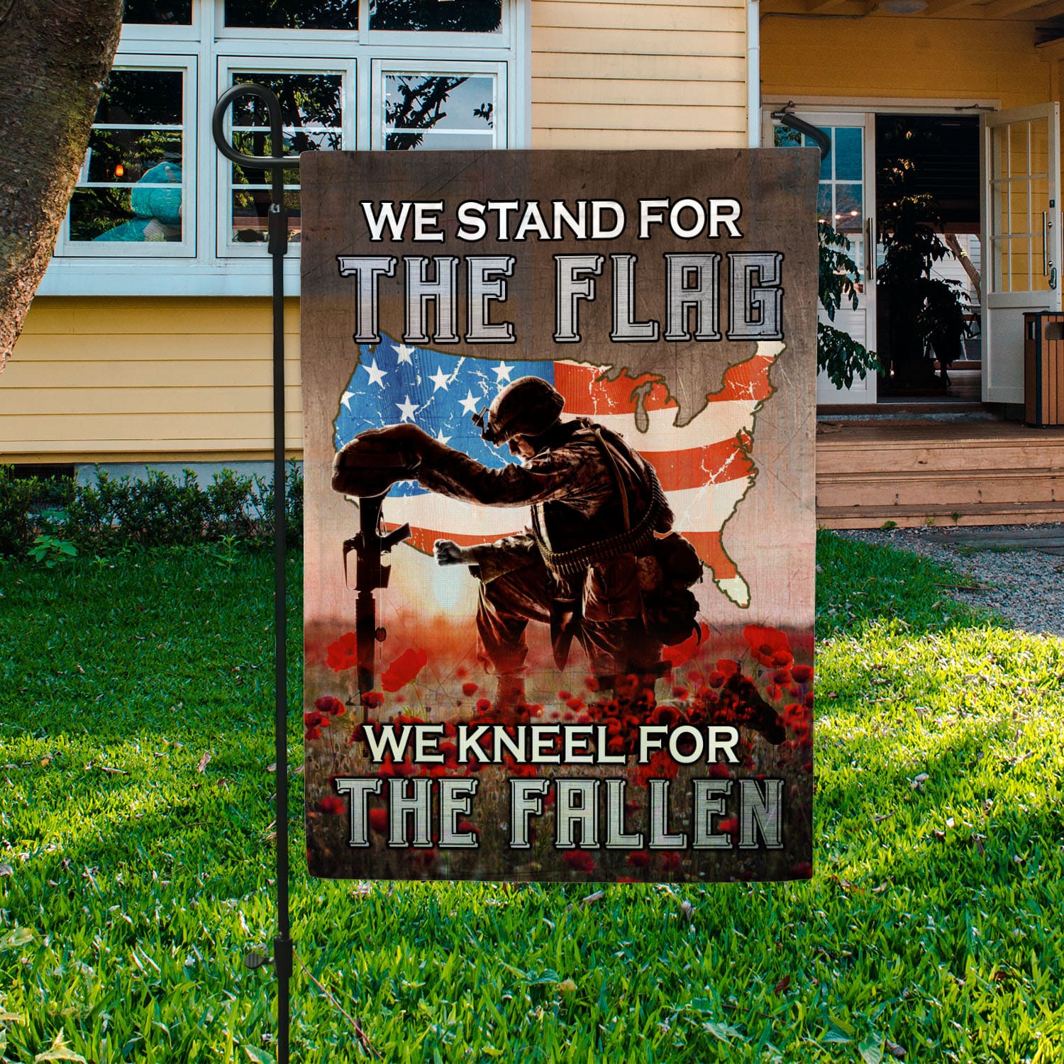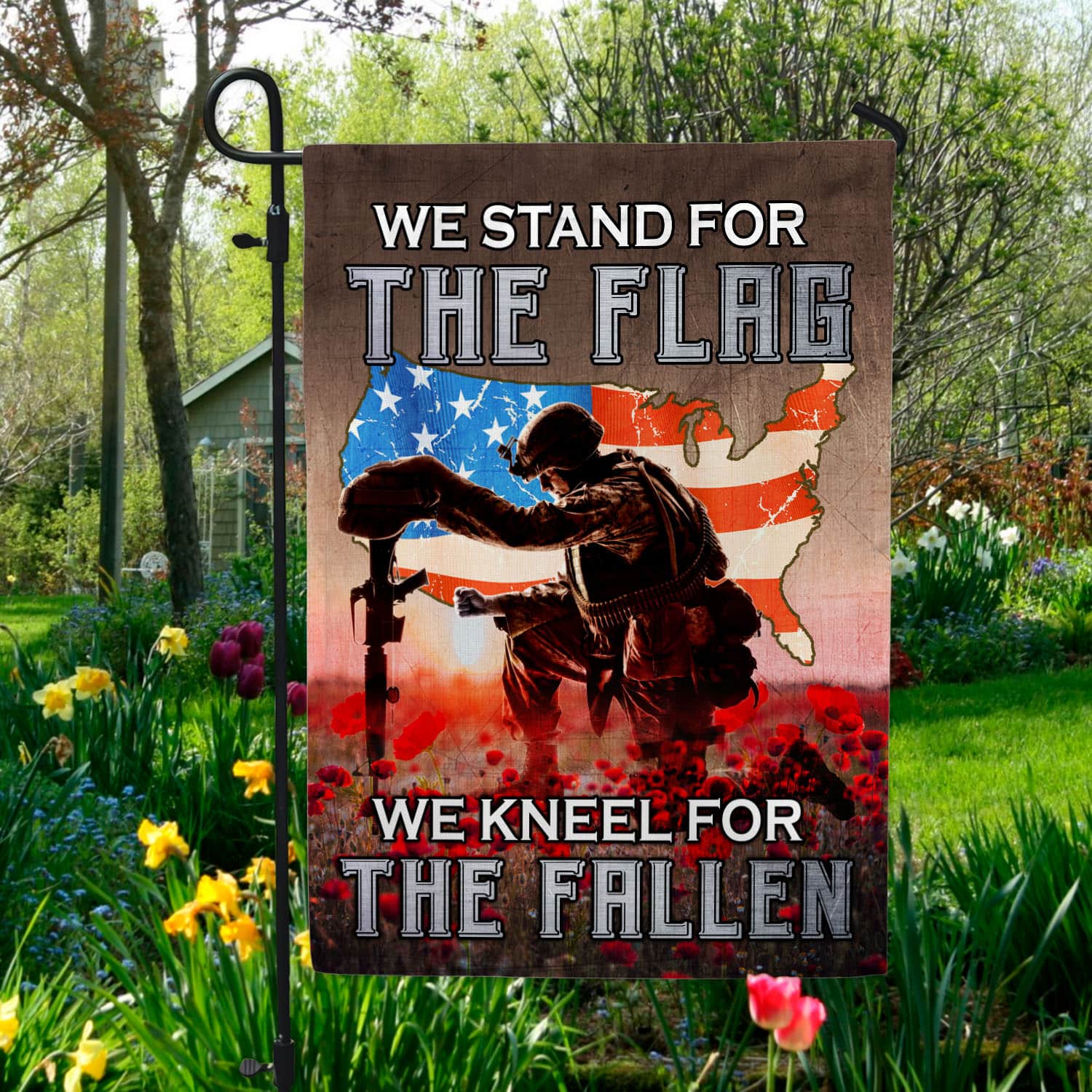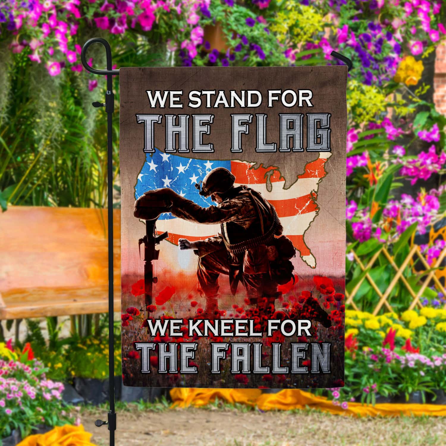 Let’s Shop We Stand For The Flag We Kneel For The Fallen Poppy Flowers American Outdoor House Flag – Veteran Home Garden Flag!