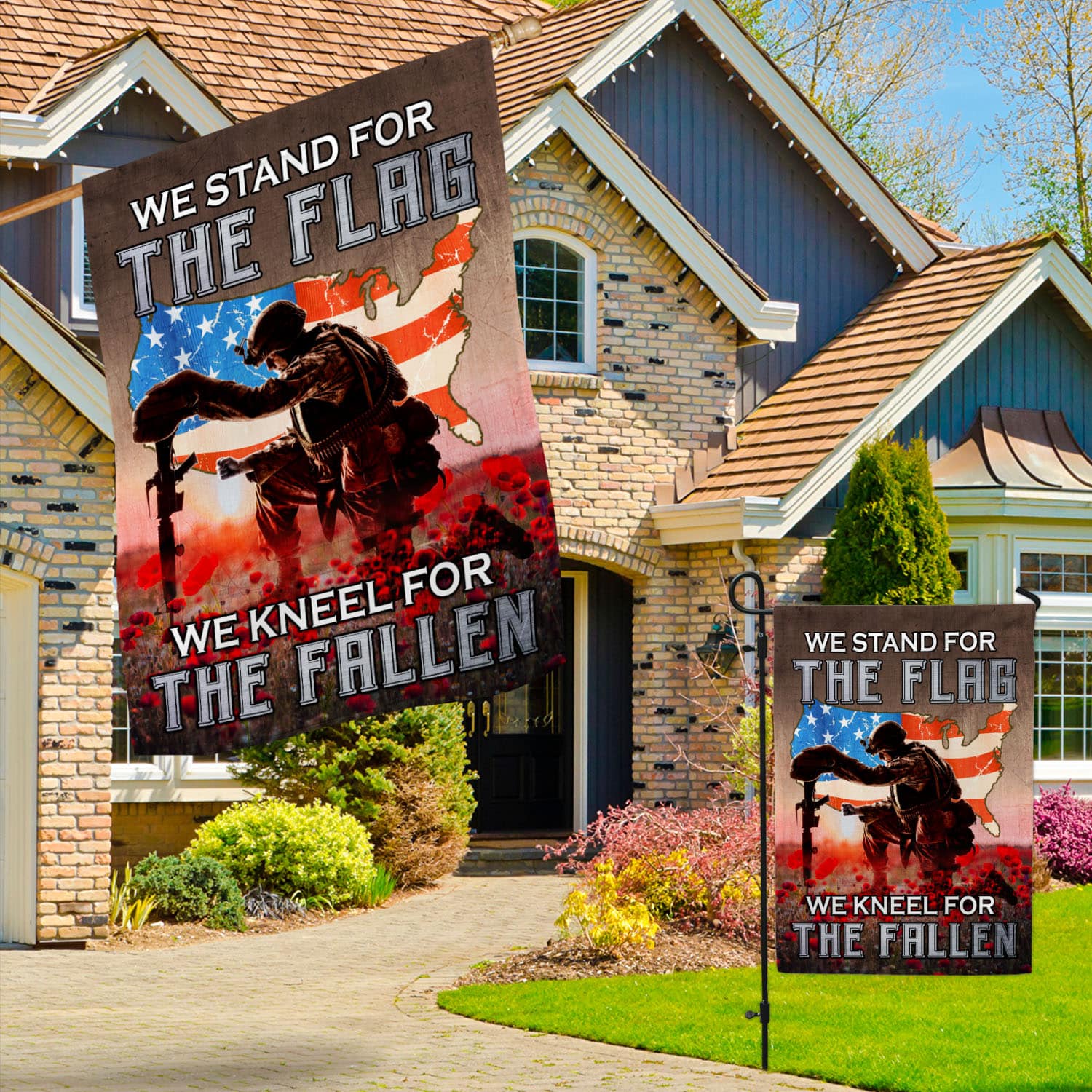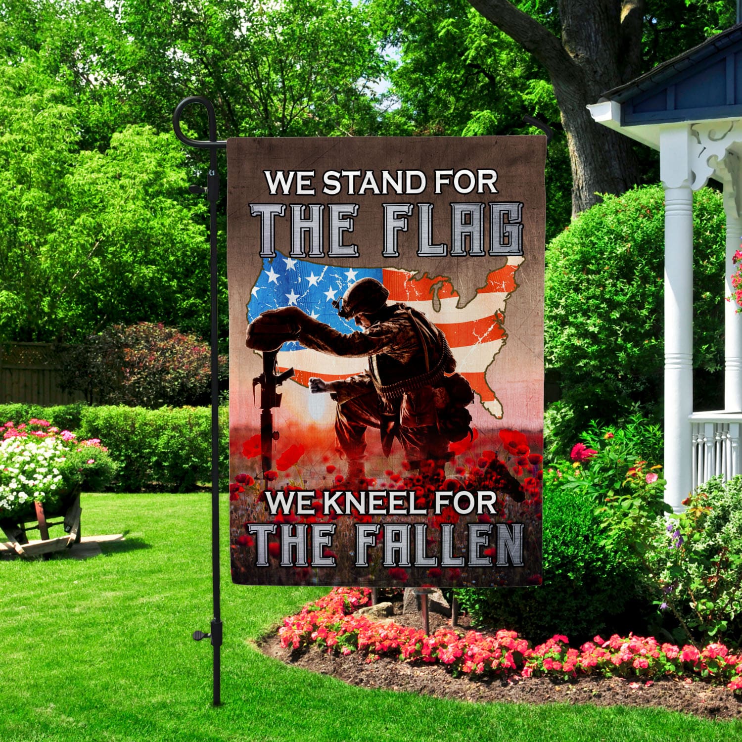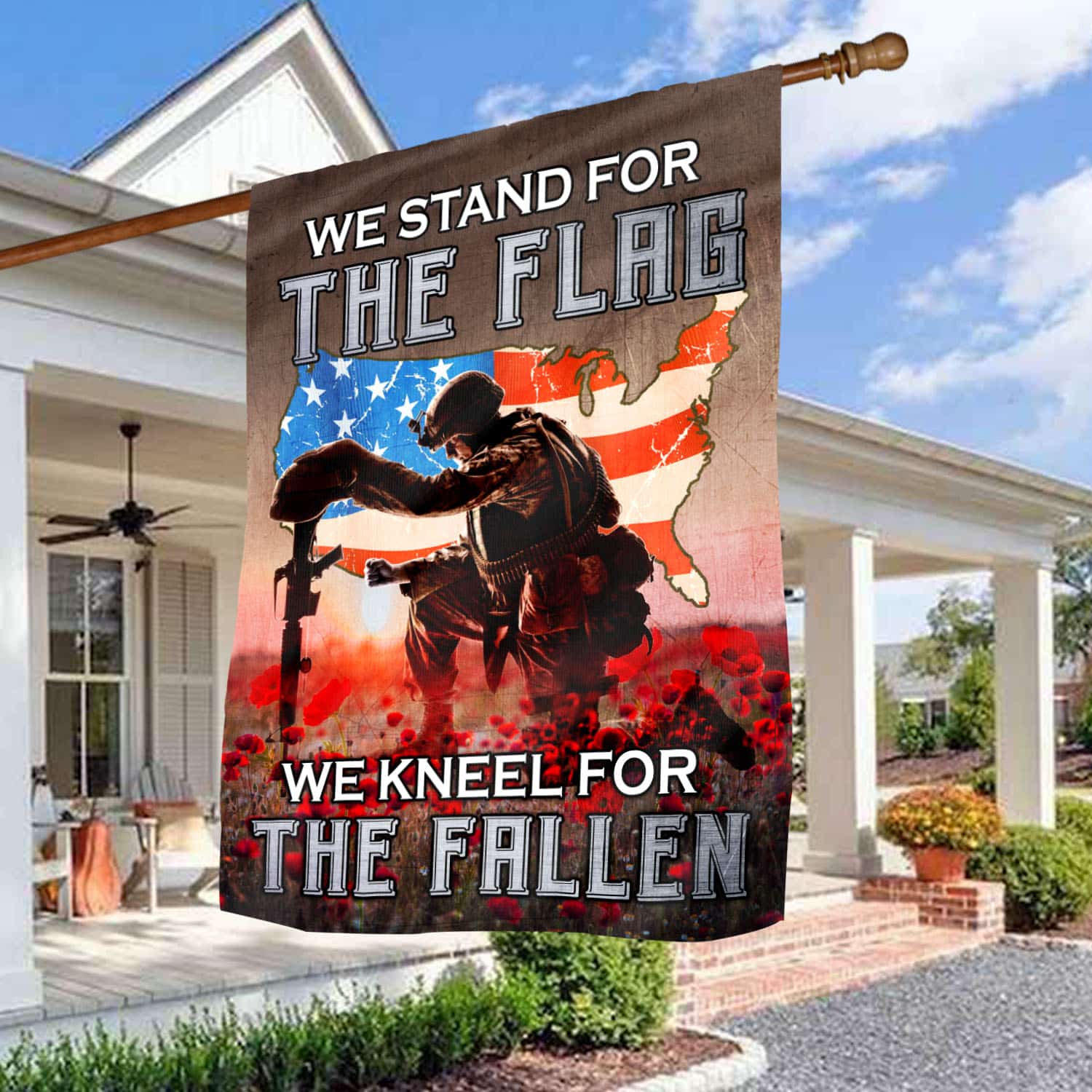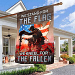 Let’s Shop We Stand For The Flag We Kneel For The Fallen Poppy Flowers American Outdoor House Flag – Veteran Home Garden Flag!