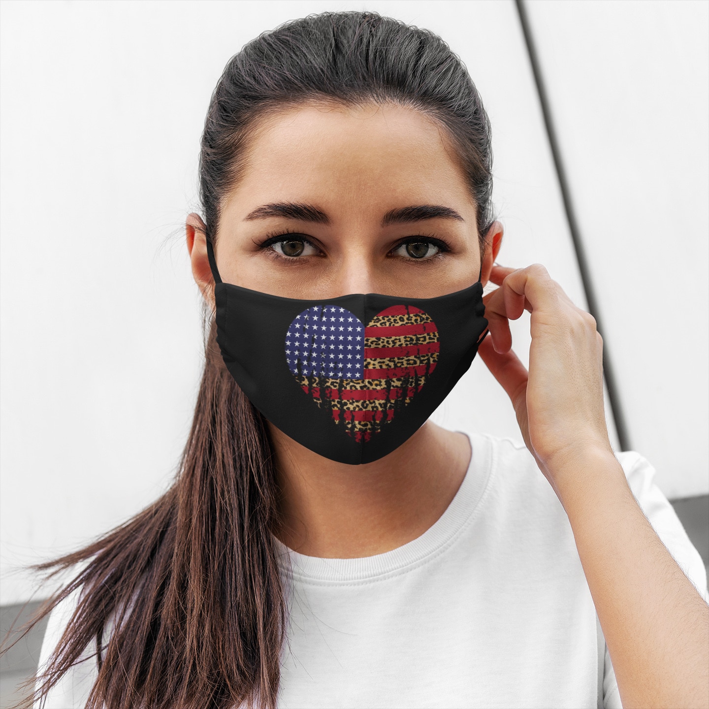 Let’s Shop American Flag Leopard Pattern 4th of July Washable Reusable Custom Printed Cloth Face Mask Cover!