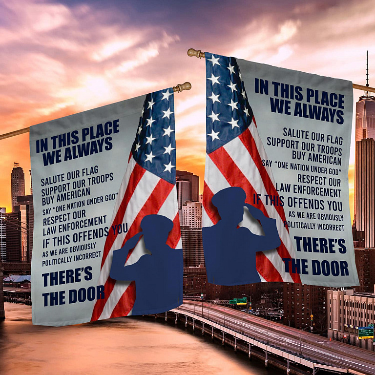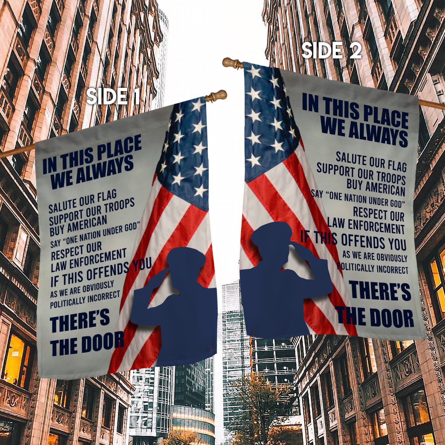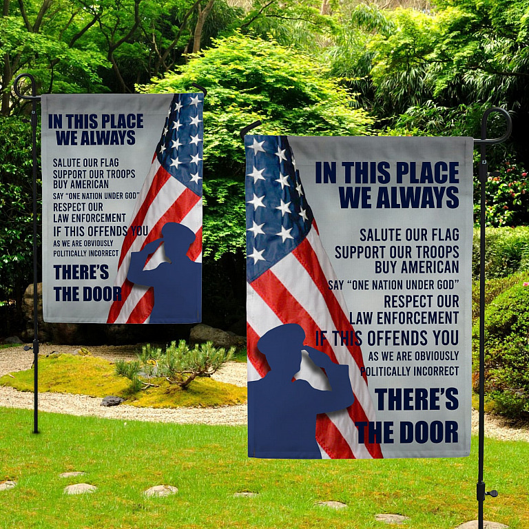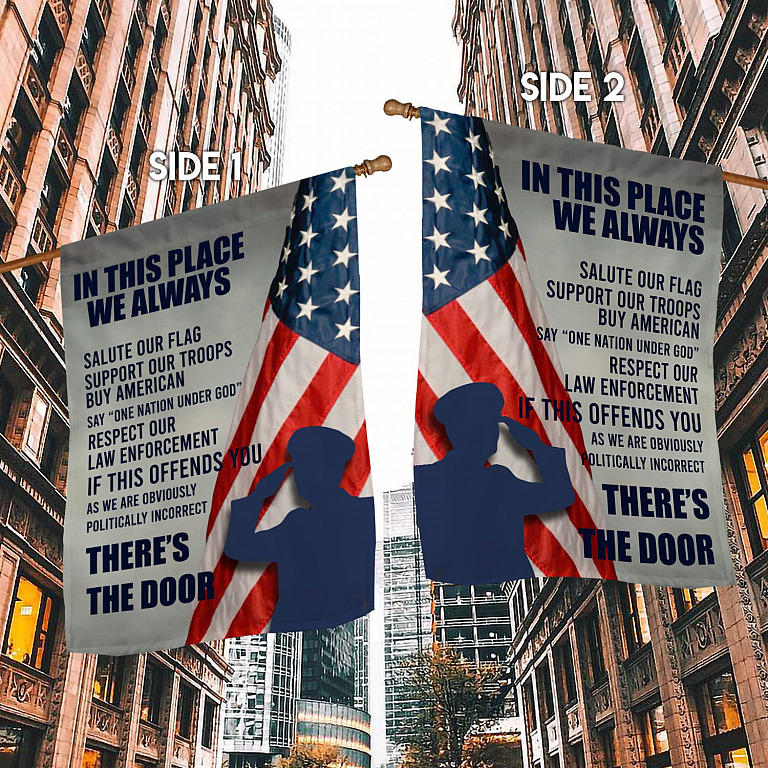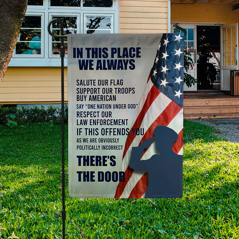 Let’s Shop In This Place We Always Salute Our Flag Support Our Troops Garden Flag – House Flag – Wall Flag!