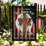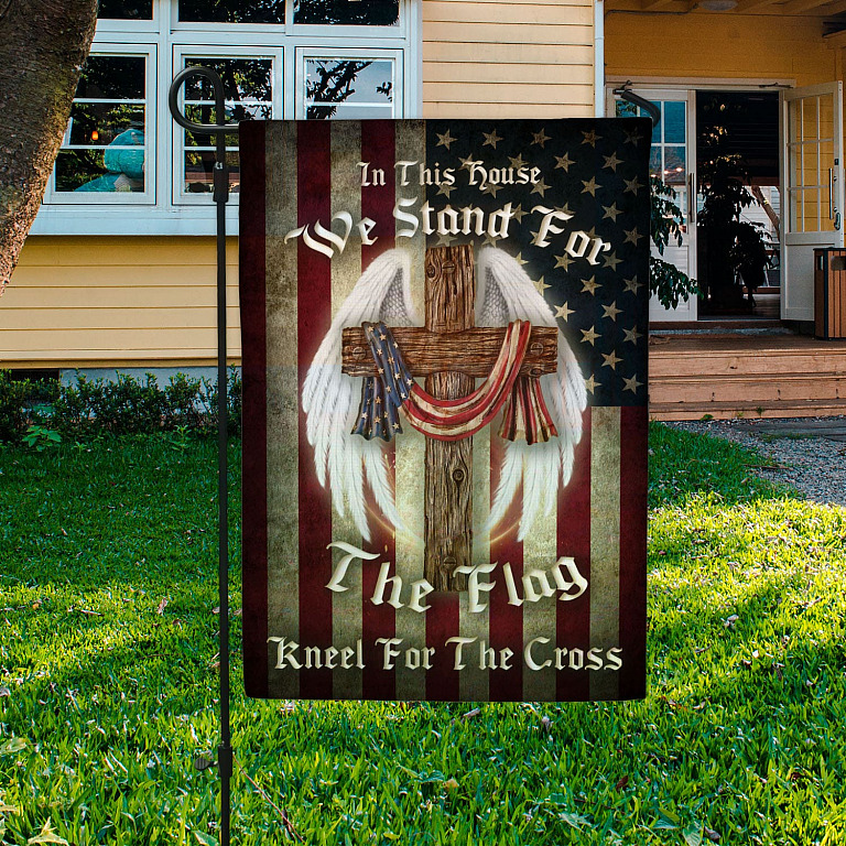 Let’s Shop In This House We Stand For The Flag Kneel For The Cross Garden Flag – American Christian Cross House Flag!