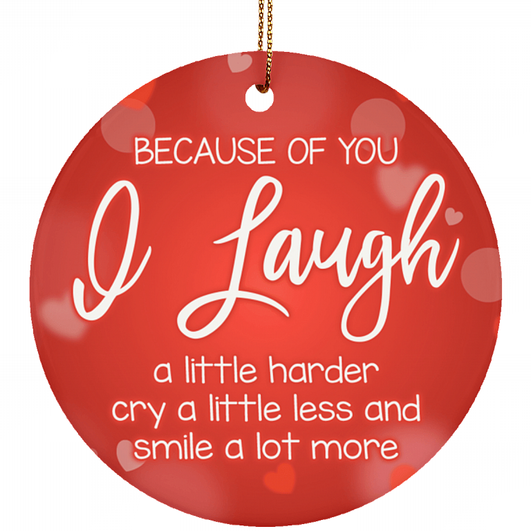 Shop Because Of You I Laugh A Little Harder Decorative Holiday Flat Circle Porcelain Ceramic Ornament Keepsake.