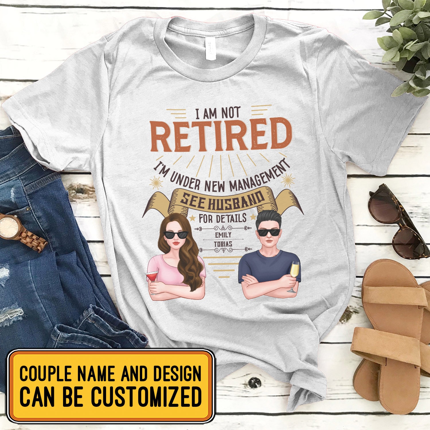 Personalized Couple Tee I Am Not Retired I’m Under New Management See Wife For Details T-Shirt