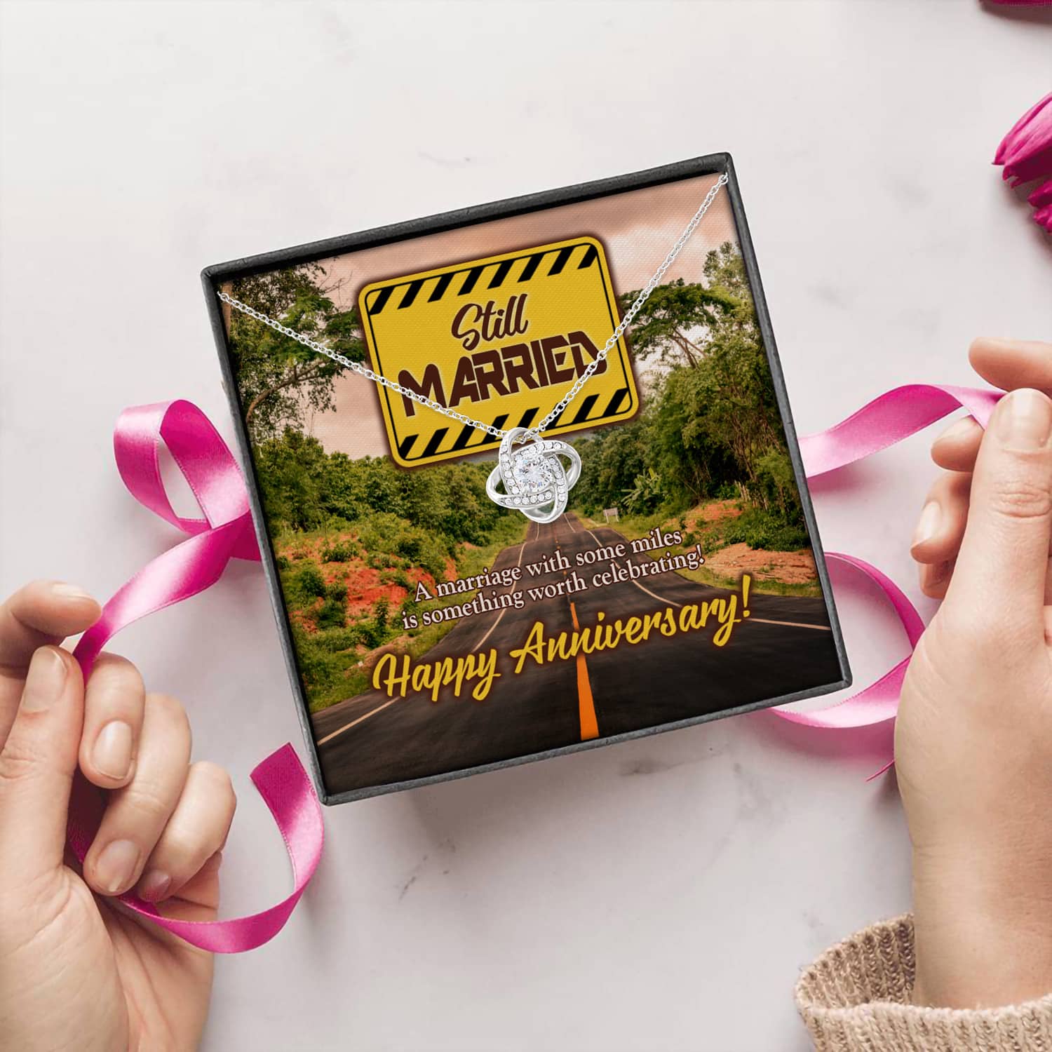 Let’s Shop Still Married a Marriage with Some Miles Is Something Worth Celebrating Happy Anniversary Love Knot Pendant Necklace!