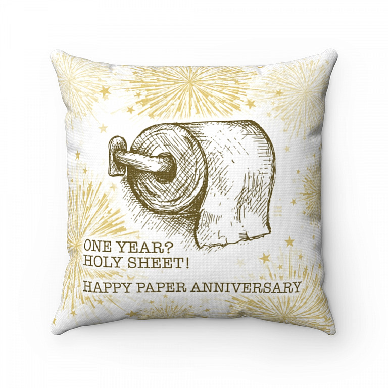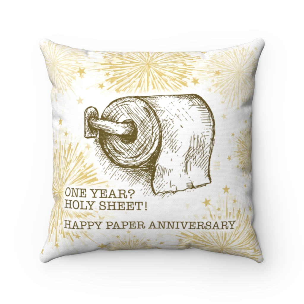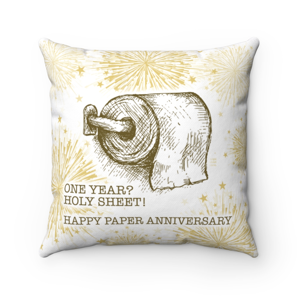 Let’s Shop One Year Anniversary Throw Pillow – One Year Holy Sheet Happy Paper Anniversary Indoor Outdoor Cushion!