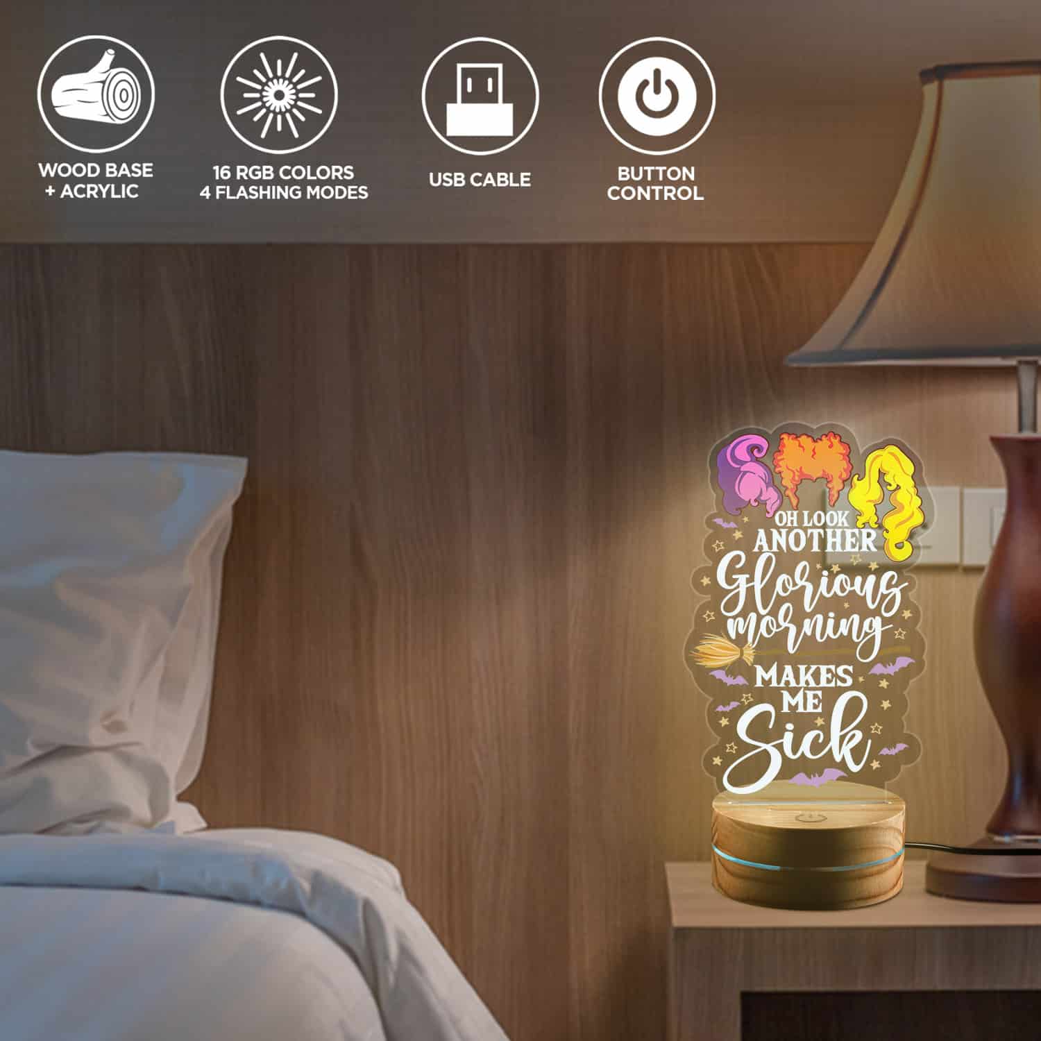Let’s Shop Another Glorious Morning Make Me Sick Three Witch Hocus Pocus Squad Night Light – Halloween Gifts LED Light!
