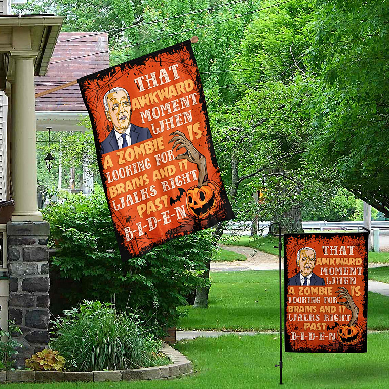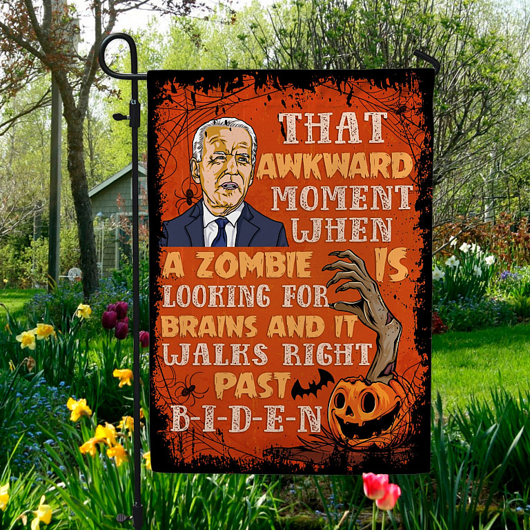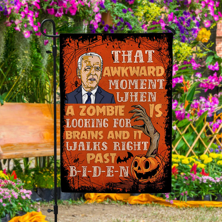 Let’s Shop Funny Anti Joe Biden Impeach Biden Sarcasm Halloween Decorative Flag – That Awkward Moment When A Zombie Biden Braindead Halloween Flag!