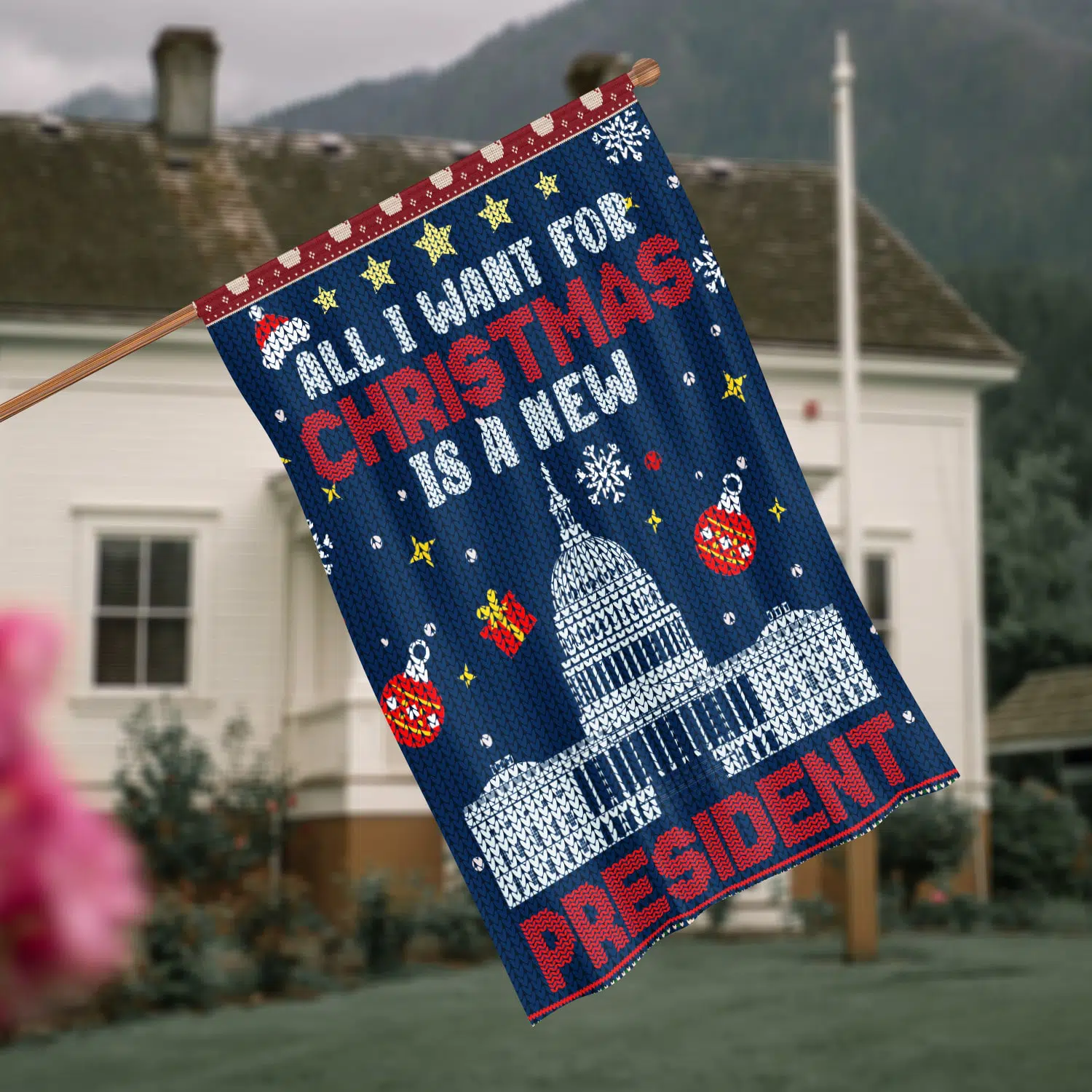 Let’s Shop All I Want for Christmas Is a New President Decorative Flag – Funny Christmas Wishes Meme Sarcastic Xmas Holiday Decorative Garden House!