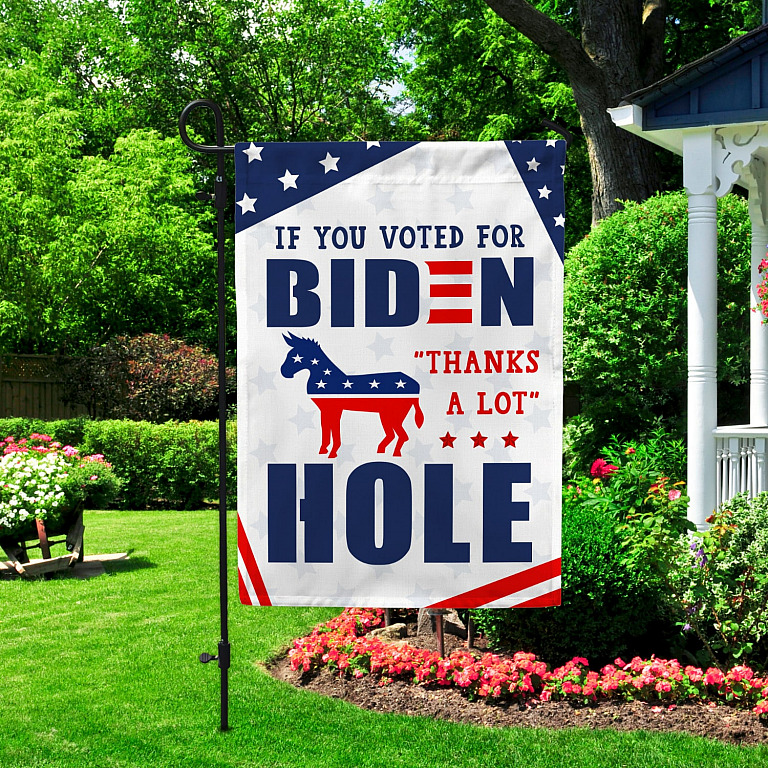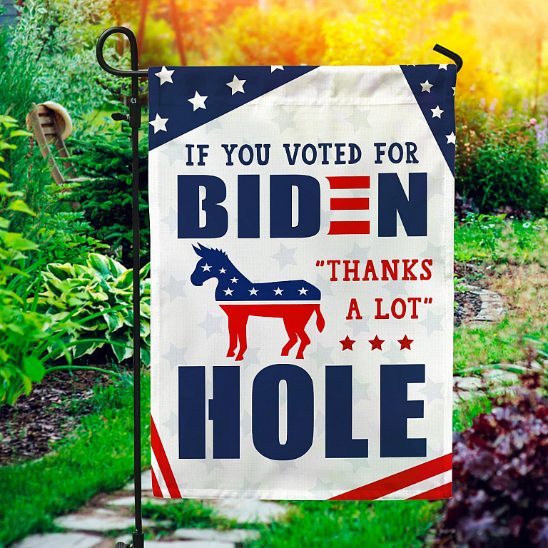 Let’s Shop Funny Sarcastic Saying Anti Joe Biden Decorative Outdoor Garden Wall House Flag – If You Voted for Biden Thanks a Lot Democrat Donkey As-hole Garden House Flag!