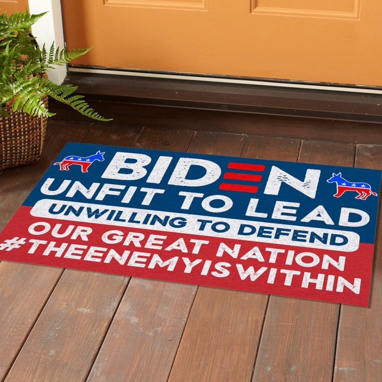 Let’s Shop Biden Unfit to Lead Unwilling to Defend Our Great Nation #theenemyiswithin Entrance Indoor Outdoor Decorative Doormat!