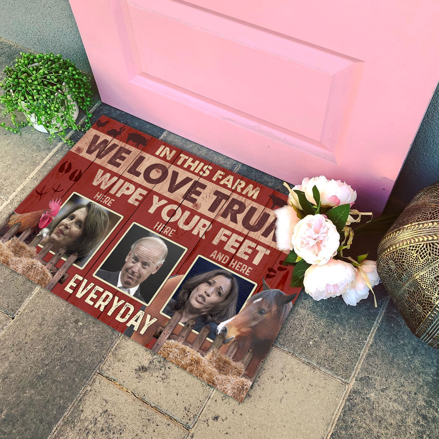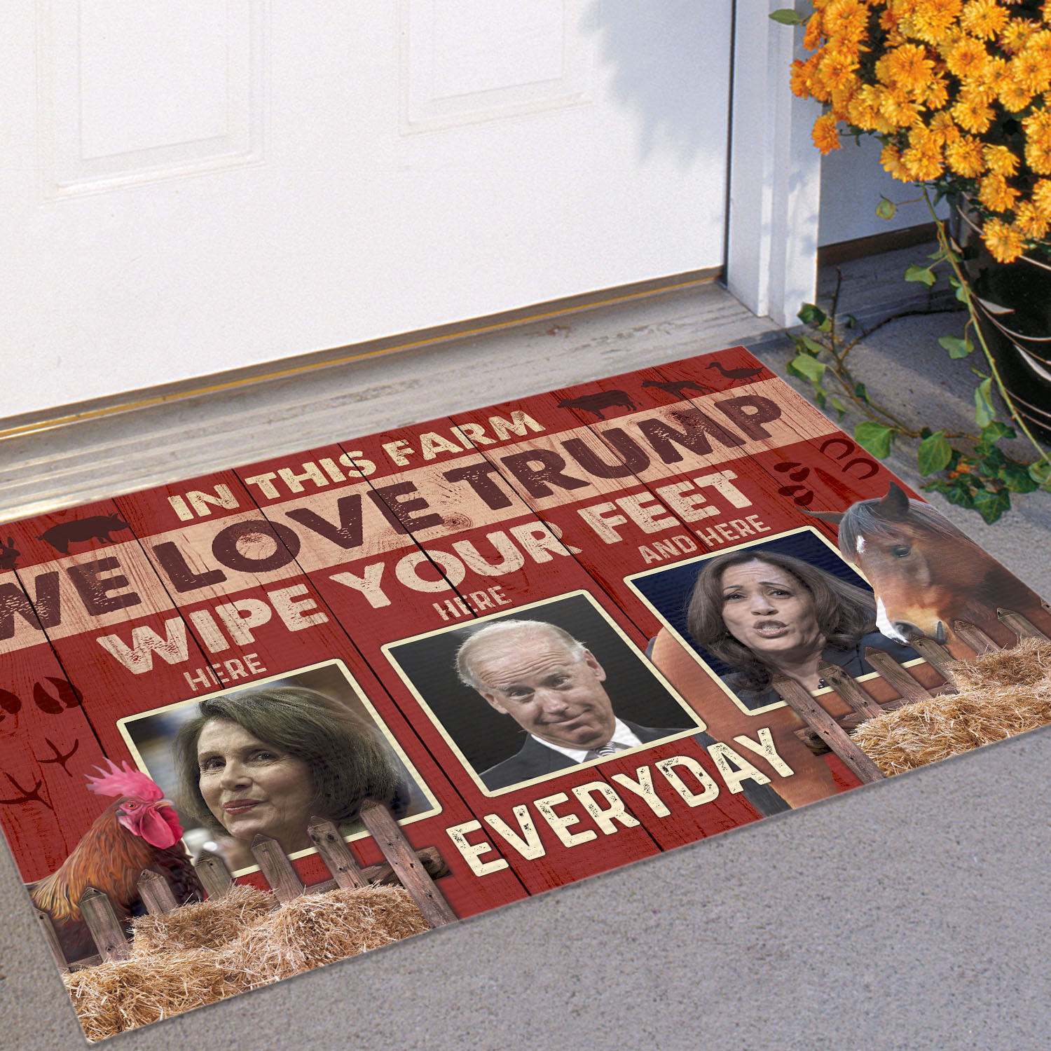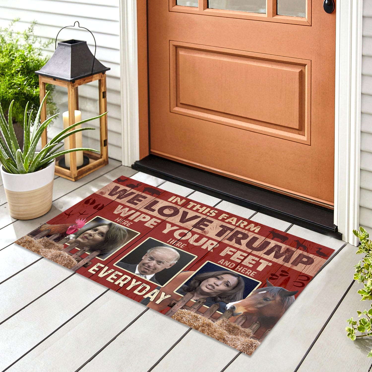 Let’s Shop In This Farm We Love Trump Wipe Your Feet Here Here And Here Everyday Nancy Biden Kamala Outdoor Indoor House Doormat!