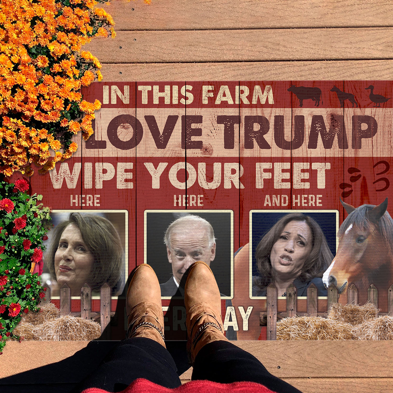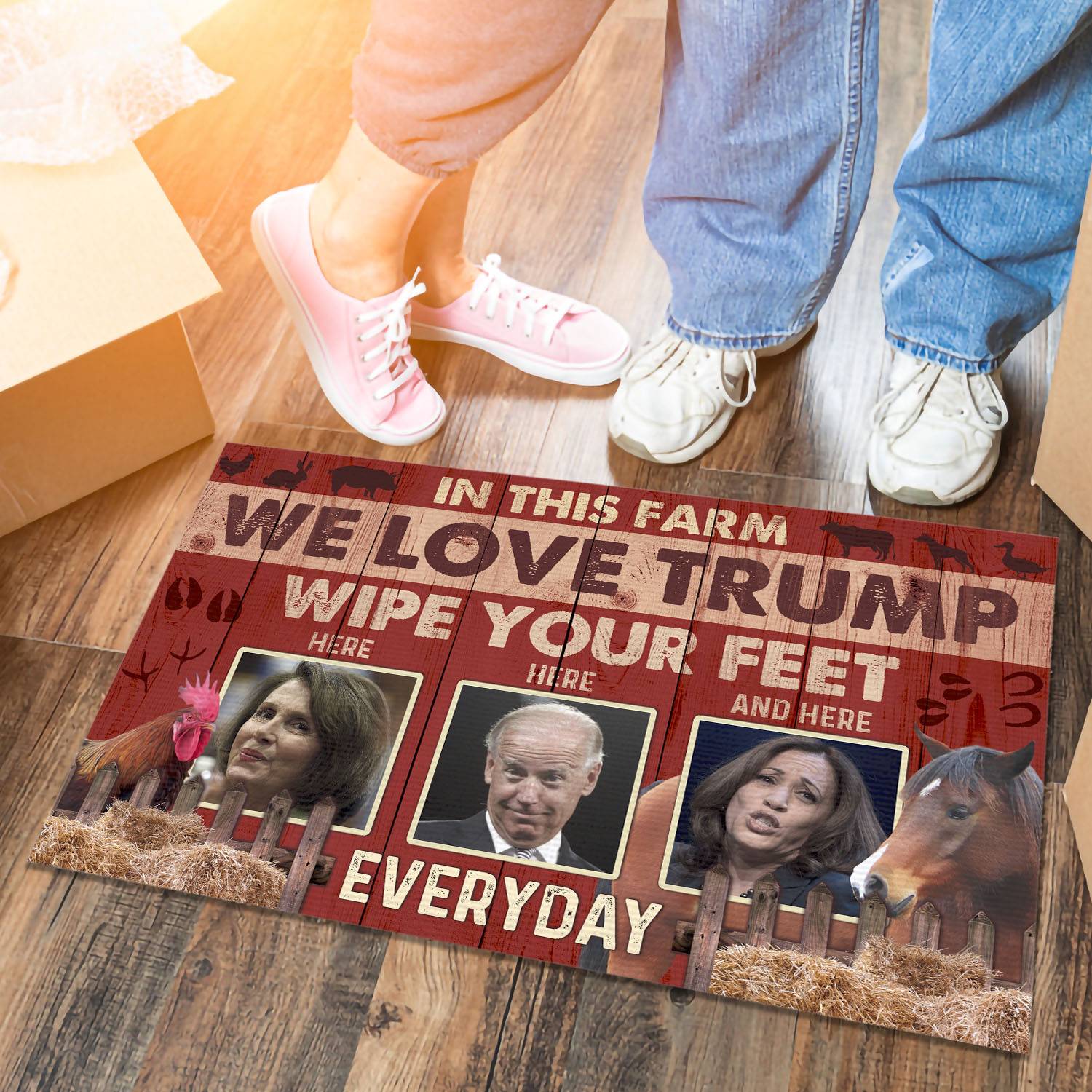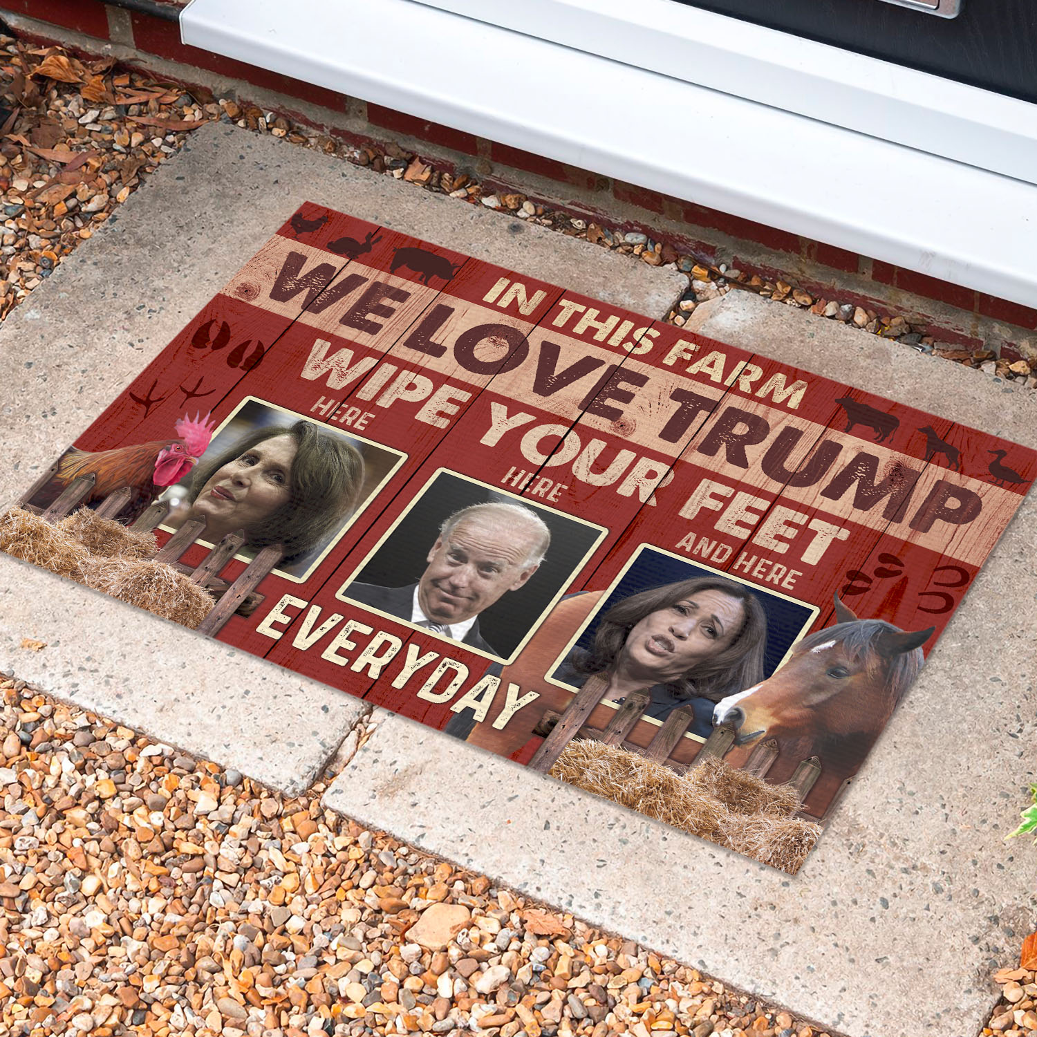 Let’s Shop In This Farm We Love Trump Wipe Your Feet Here Here And Here Everyday Nancy Biden Kamala Outdoor Indoor House Doormat!