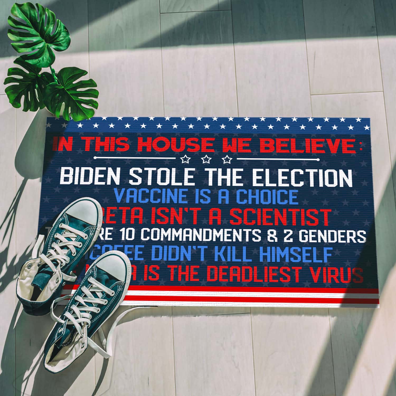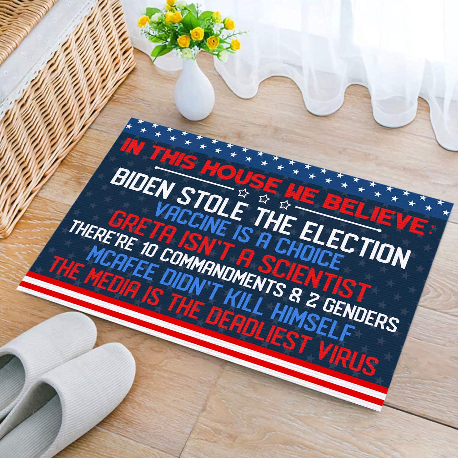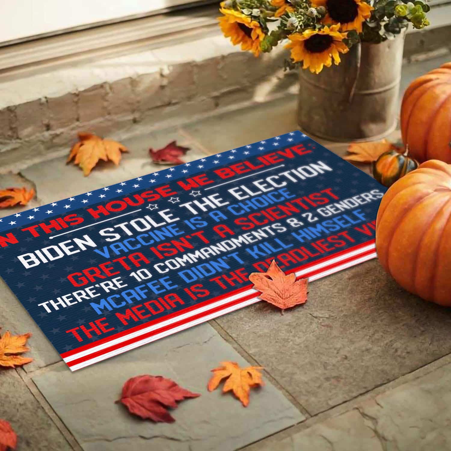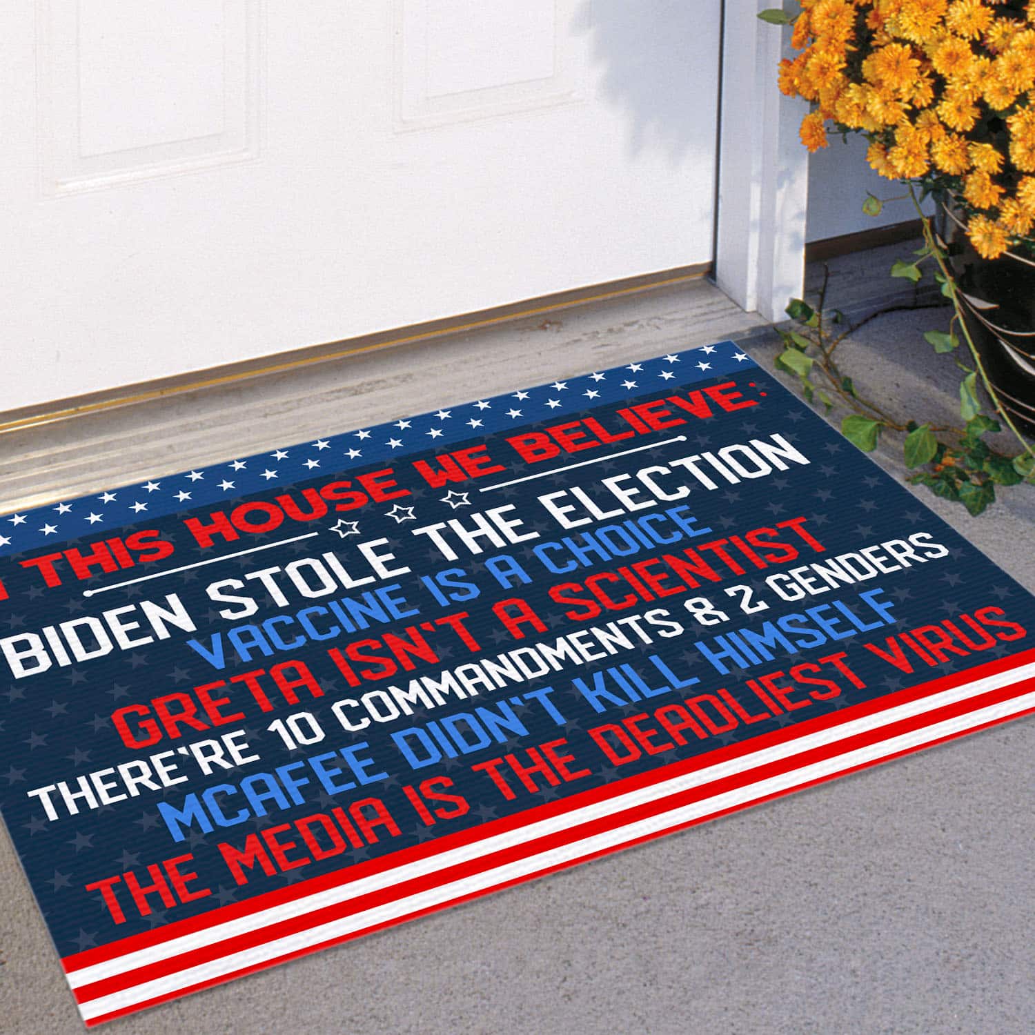 Let’s Shop In This House We Believe Biden Stole the Election Vaccine Is a Choice Entrance Indoor Outdoor Decorative Doormat!