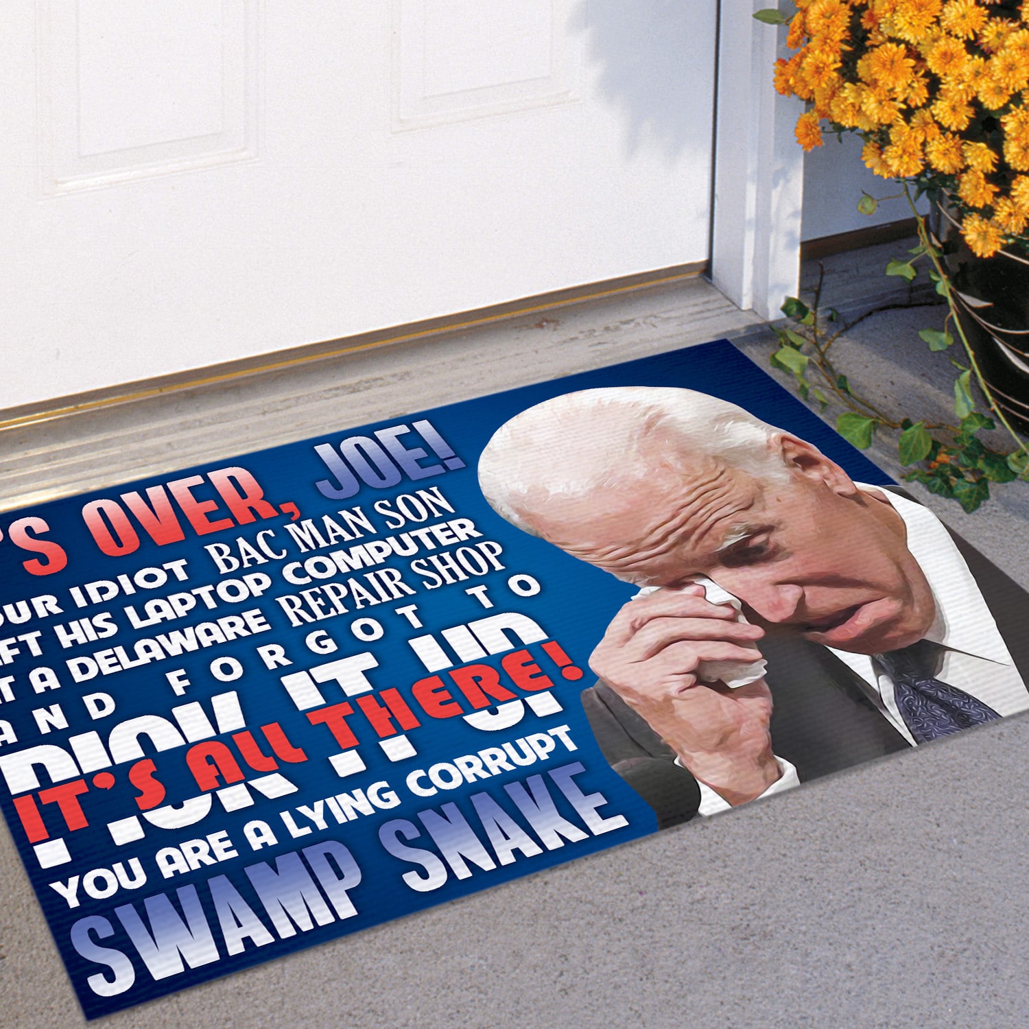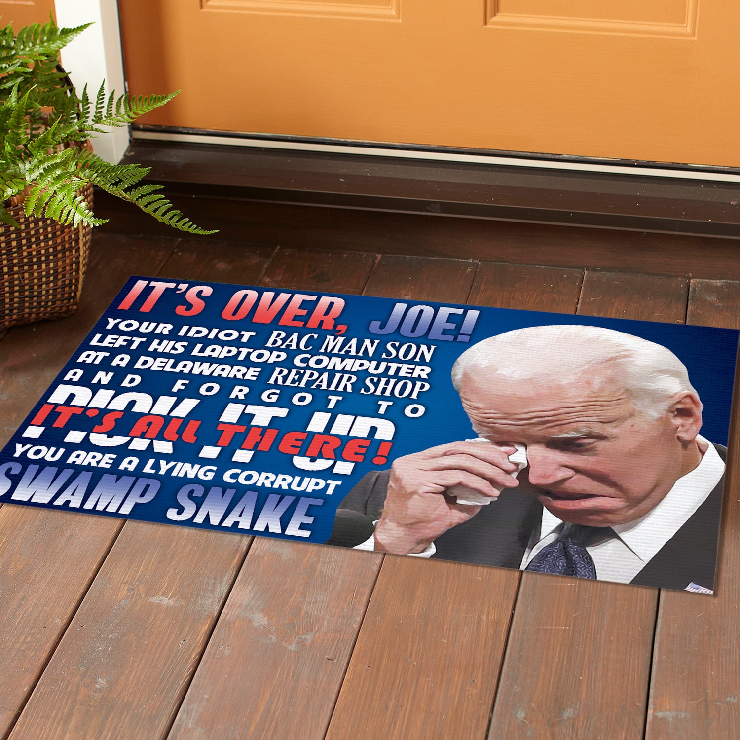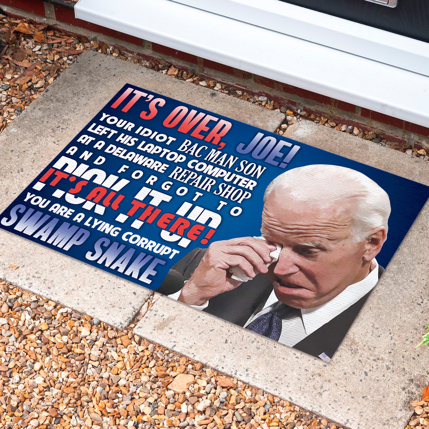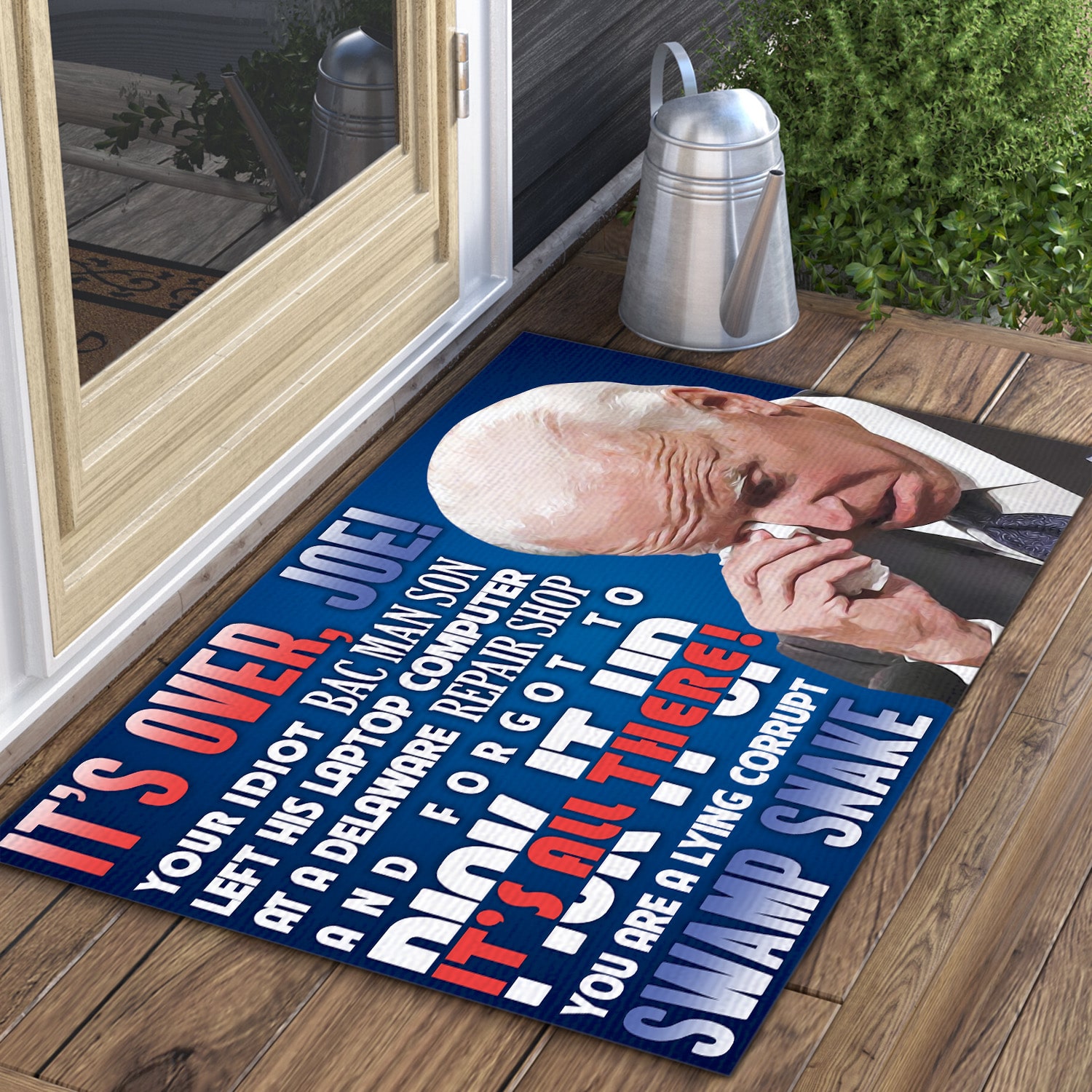 Let’s Shop It’s Over Joe Your Idiot Bac Man Son Left His Laptop Computer Anti Biden Entrance Indoor Outdoor Decorative Doormat!