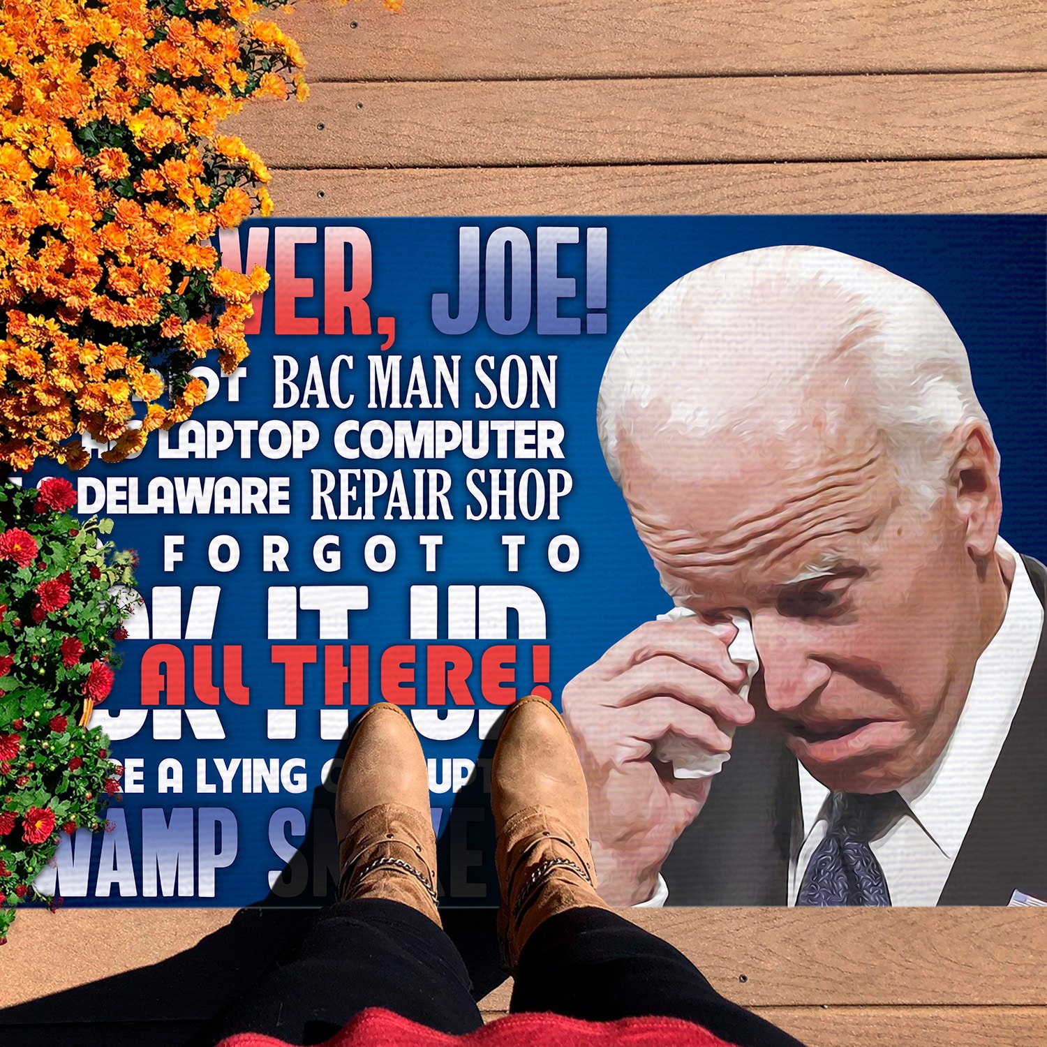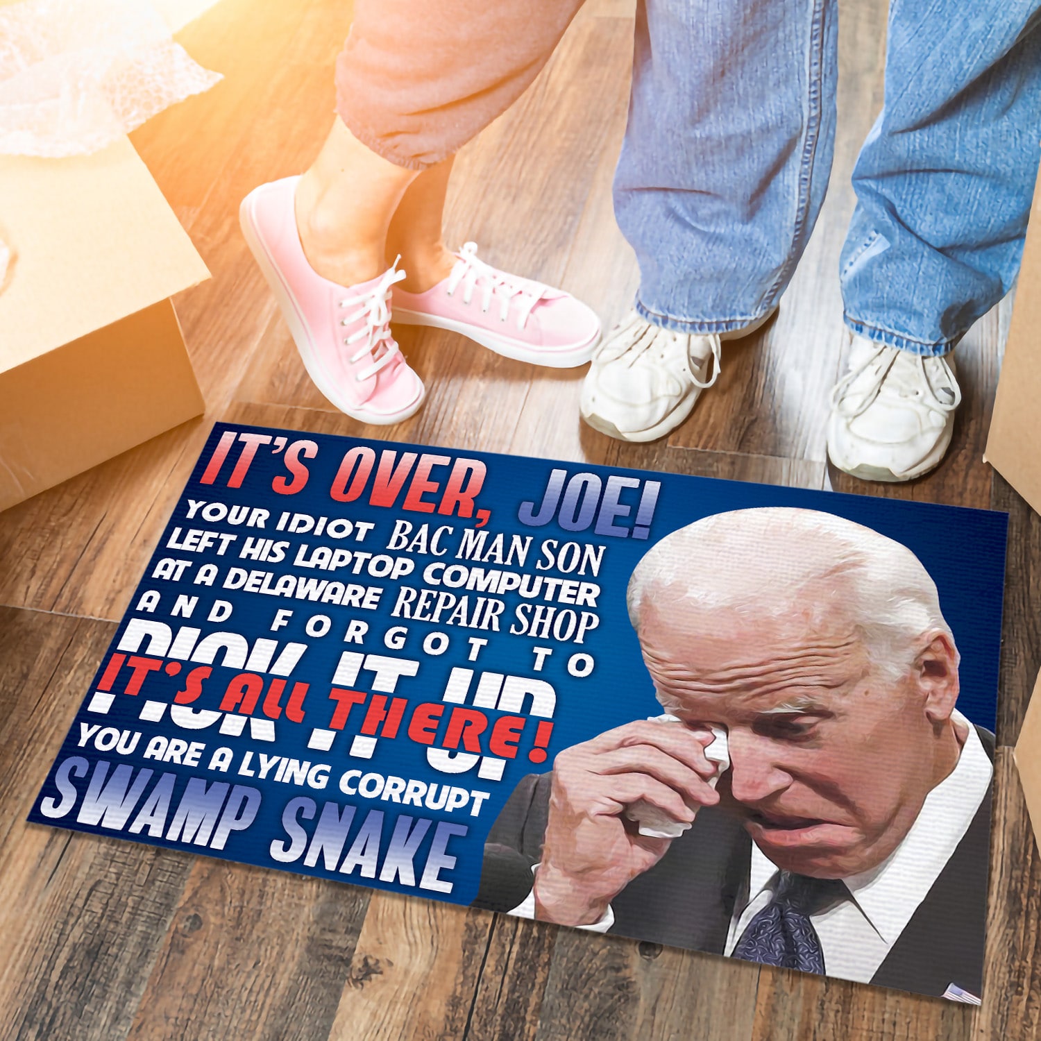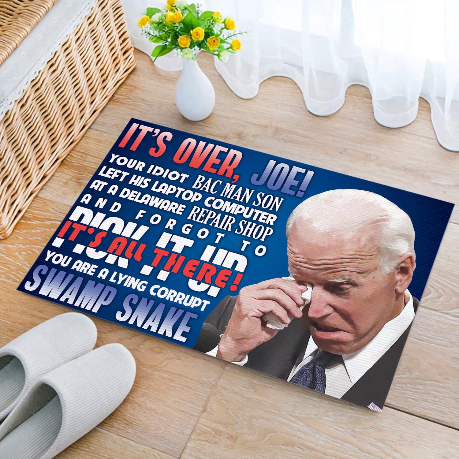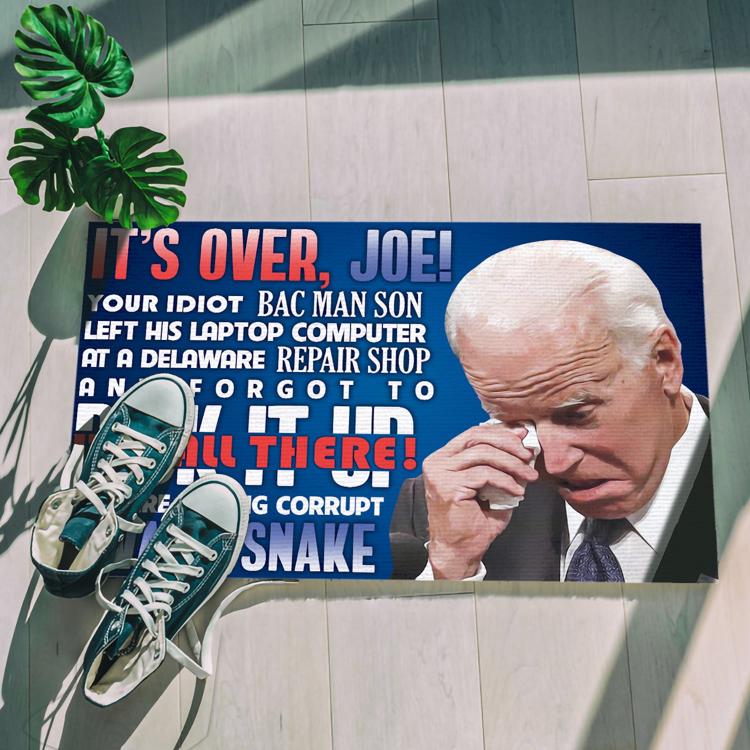 Let’s Shop It’s Over Joe Your Idiot Bac Man Son Left His Laptop Computer Anti Biden Entrance Indoor Outdoor Decorative Doormat!