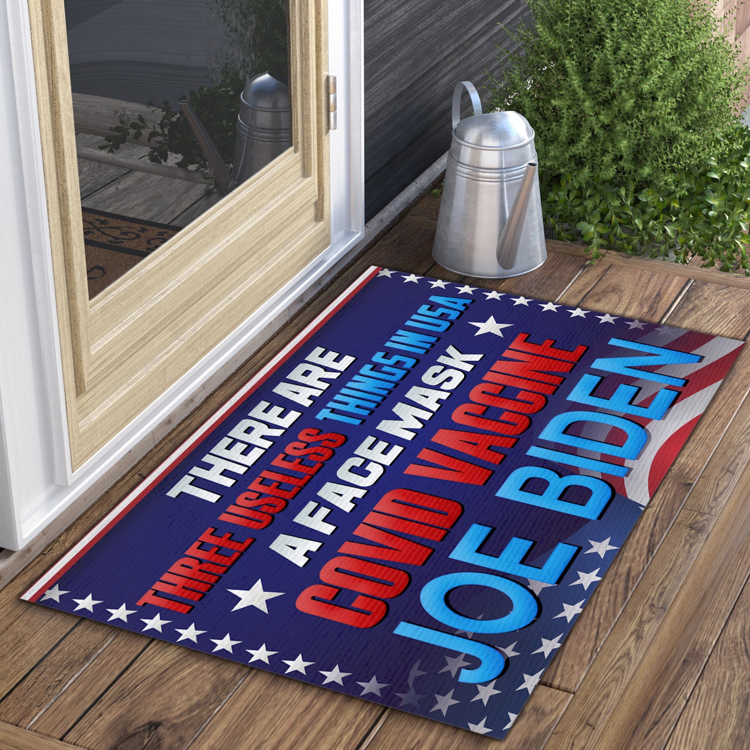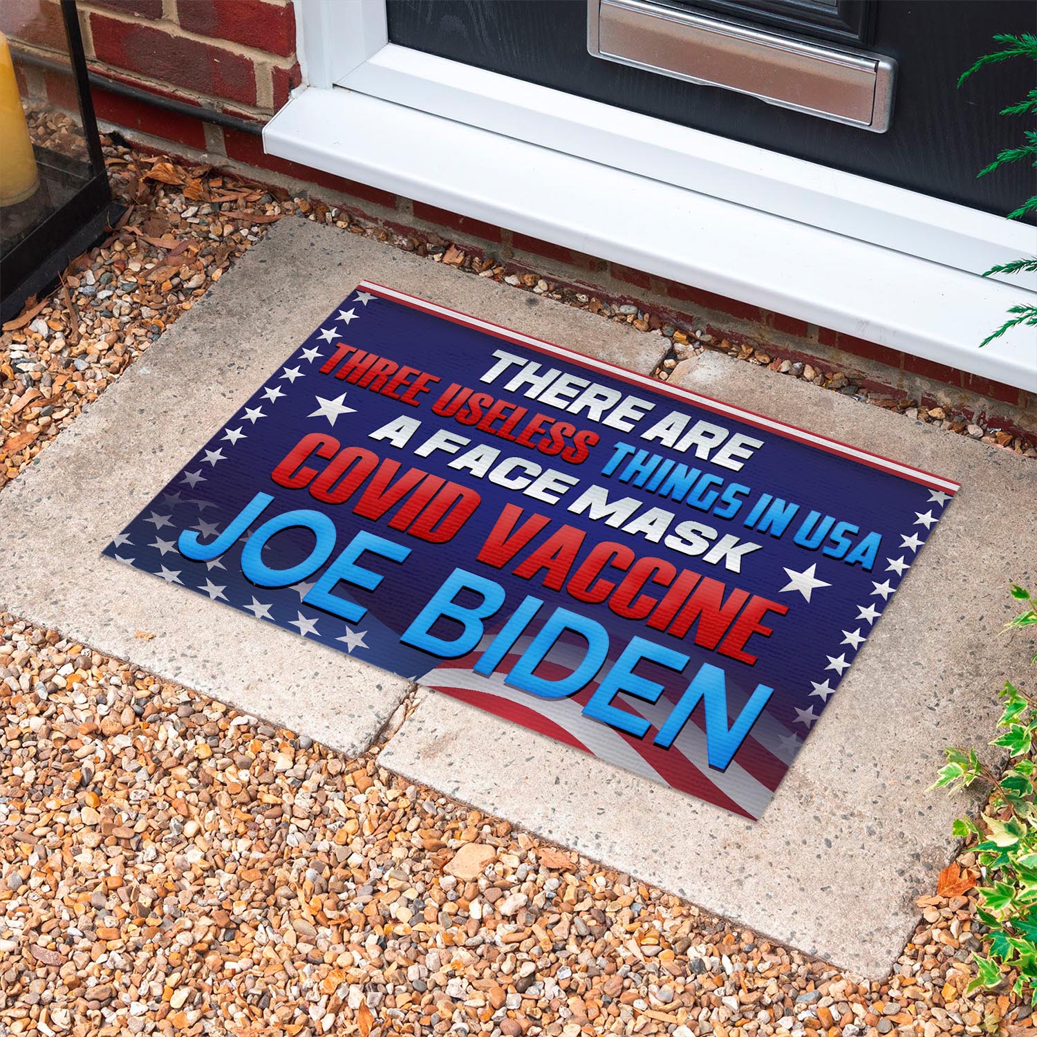 Let’s Shop There Are Three Useless Things in USA a Face Mask Covid Vaccine Joe Biden Decorative Doormat – Anti Biden Welcome Mat!