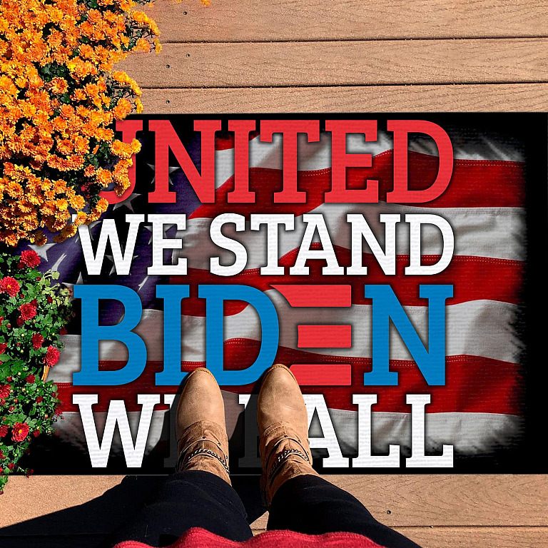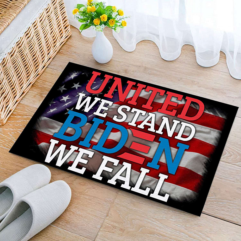 Let’s Shop United We Stand Biden We Fall Anti Biden Outdoor Indoor Doormat – Political Door Mat – American Flag Rug!