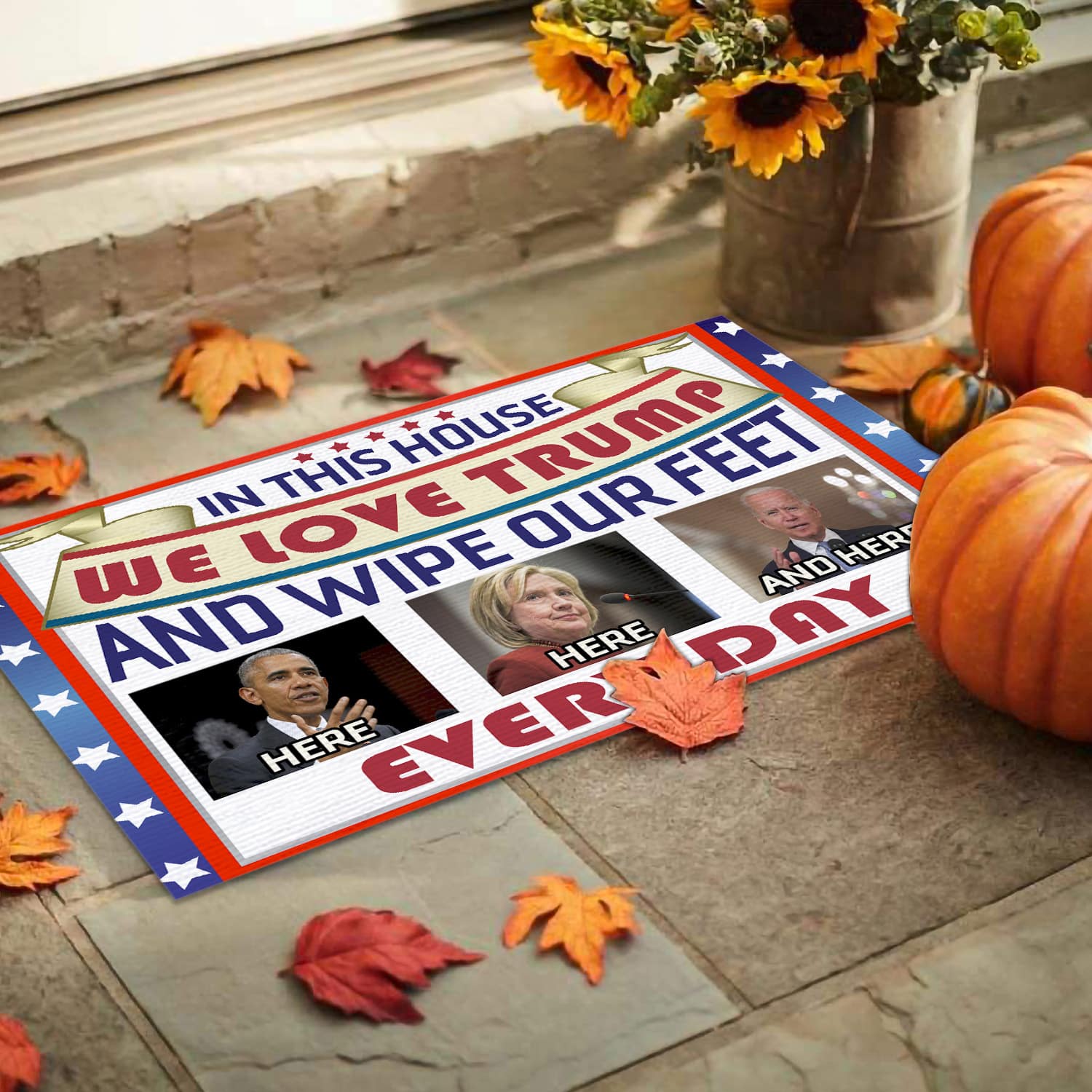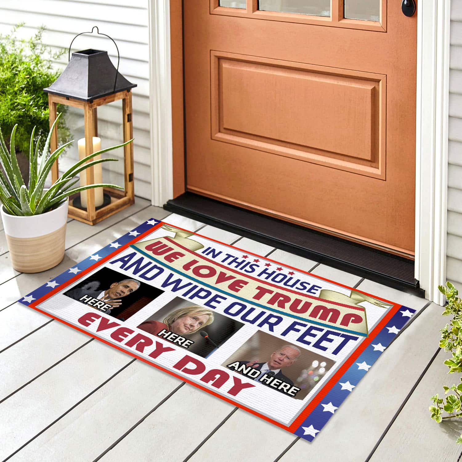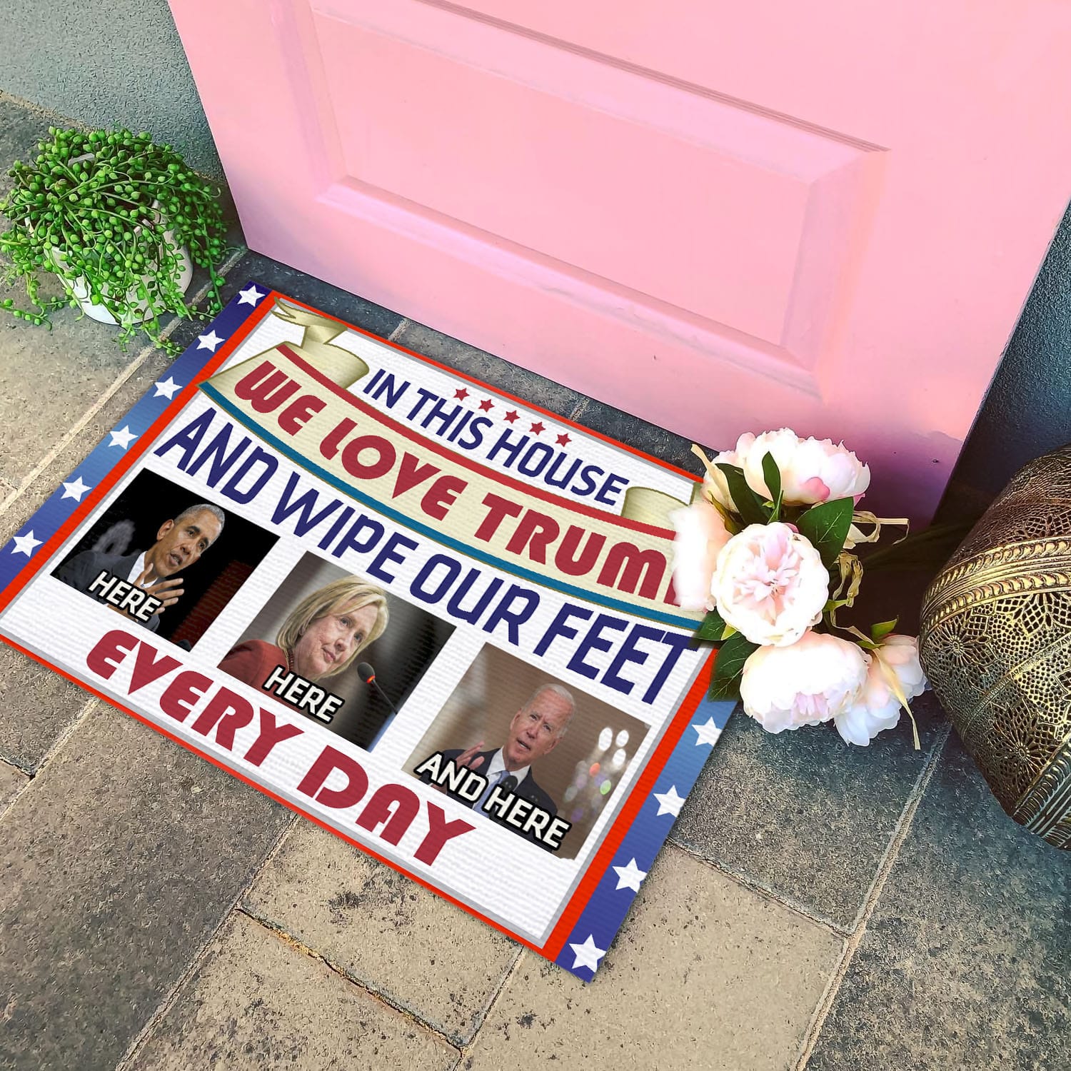 Let’s Shop Wipe Our Feet Here Here And Here Every Day Outdoor Indoor Doormat – Funny Obama Hillary Biden Door Mat!