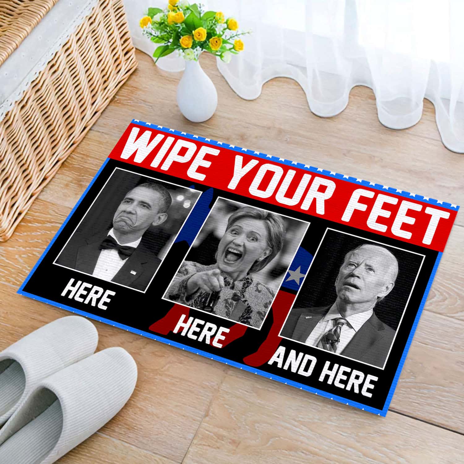 Let’s Shop Wipe Your Feet Here Here and Here Funny Obama Kamala Biden Doormat Entrance Indoor Outdoor Decorative Doormat!