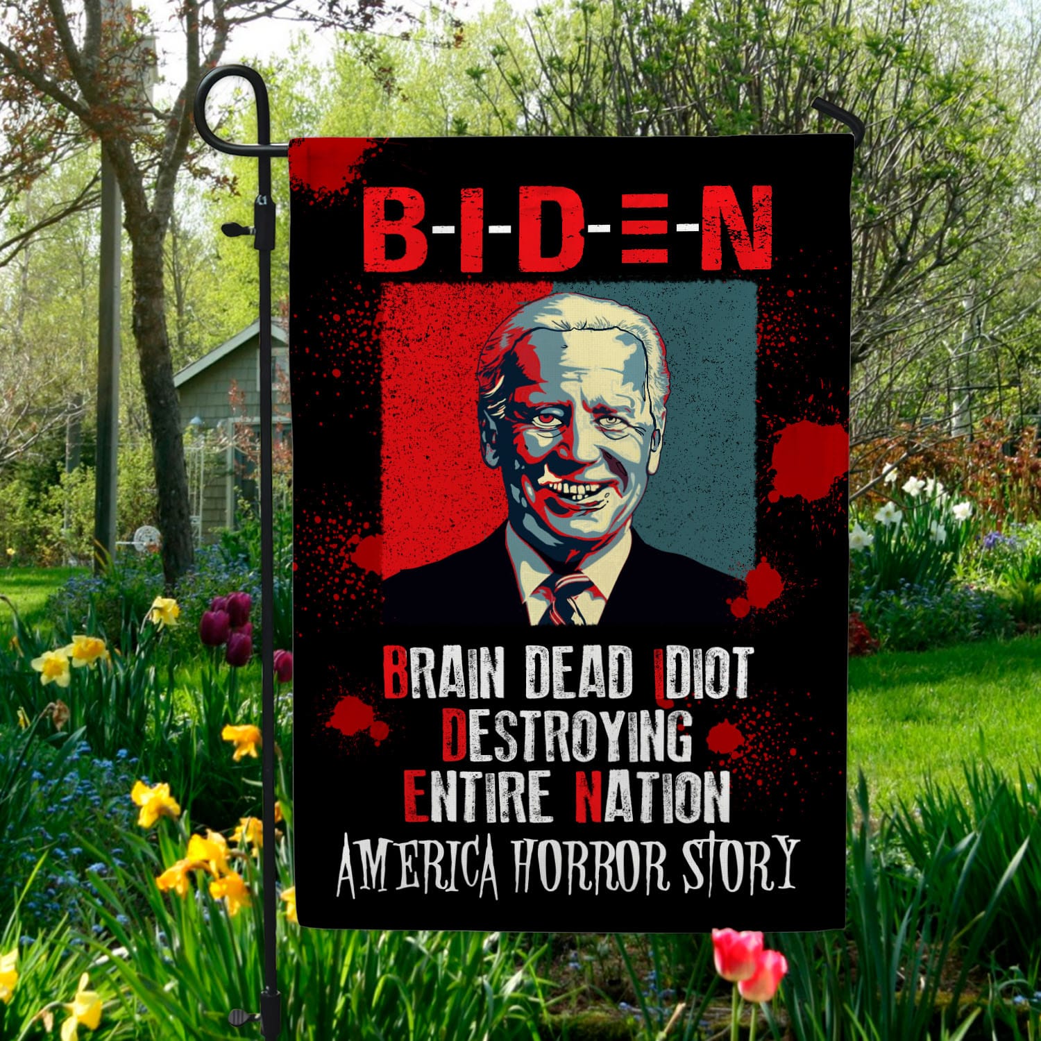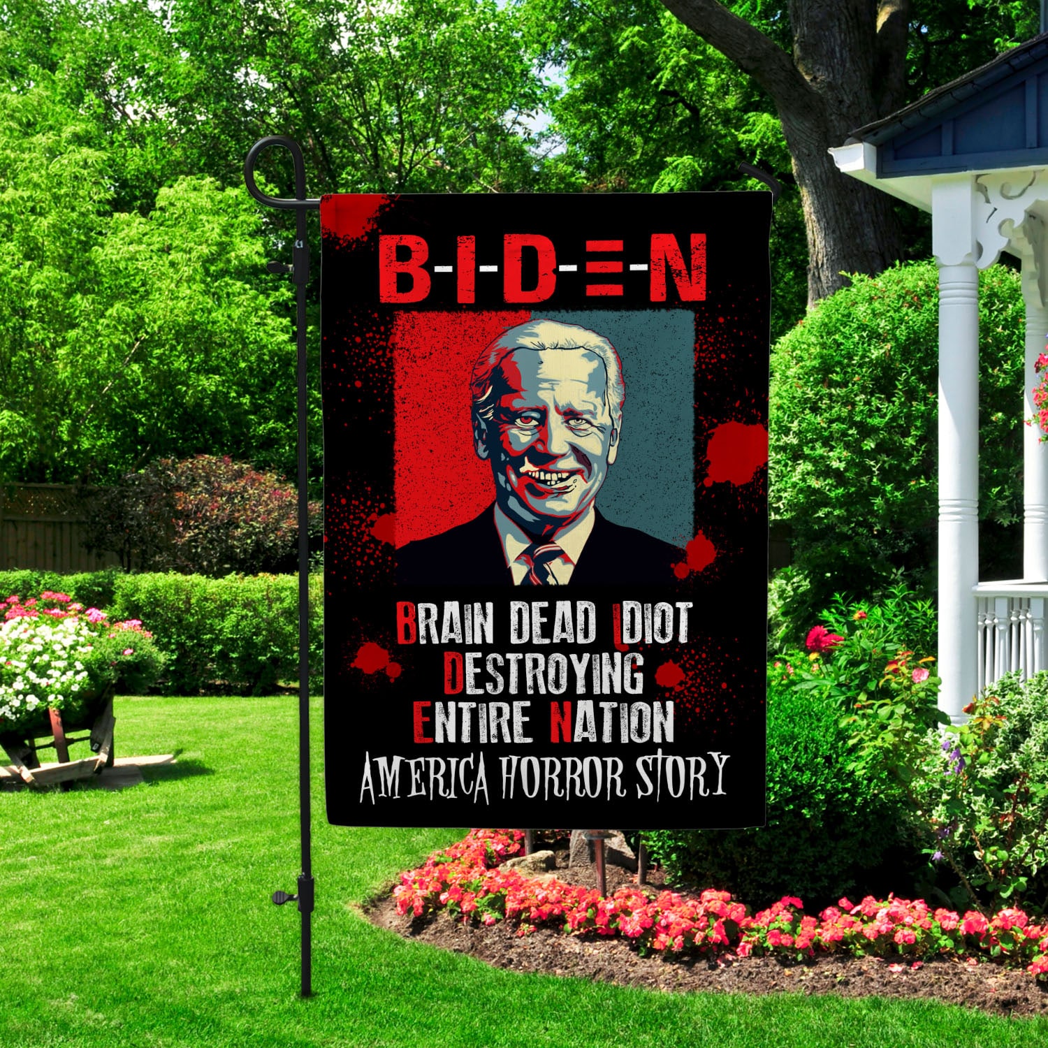 Let’s Shop Biden Brain Dead Idiot Destroying Entire Nation Outdoor House Flag – Funny Biden Halloween Home Garden Flag!