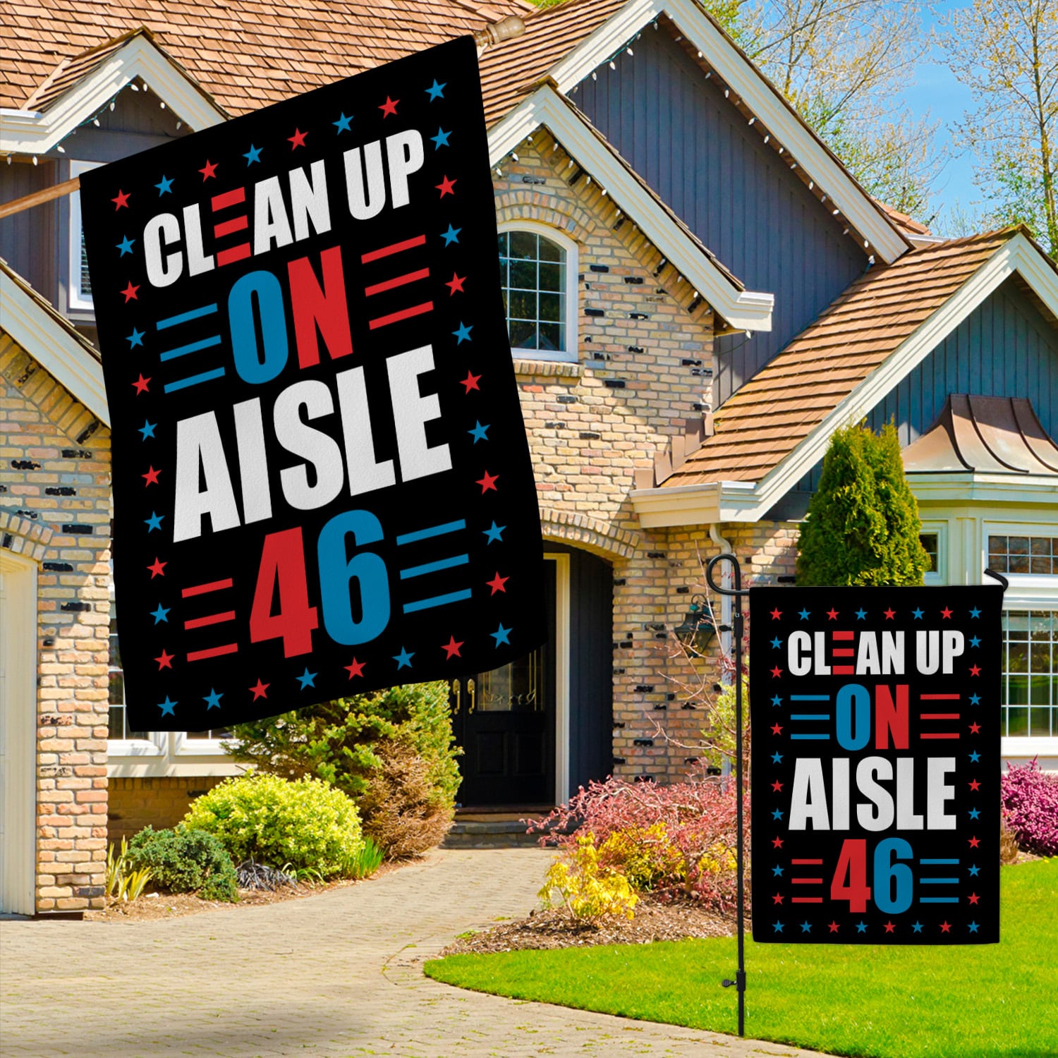 Let’s Shop Clean Up On Aisle 46 Decorative Garden Flag – House Flag – Wall Flag!