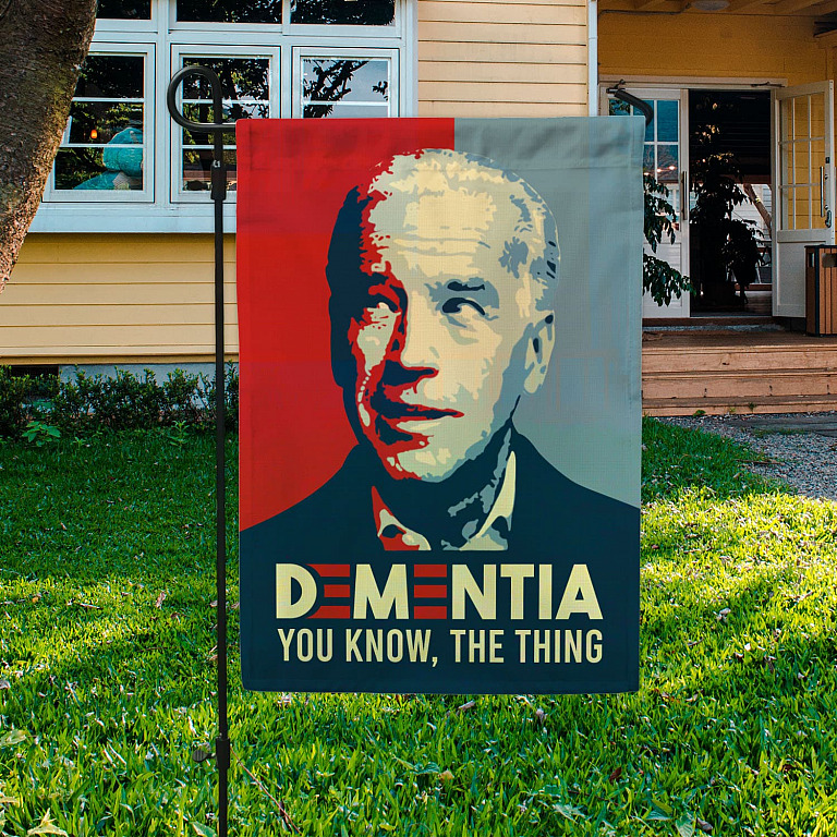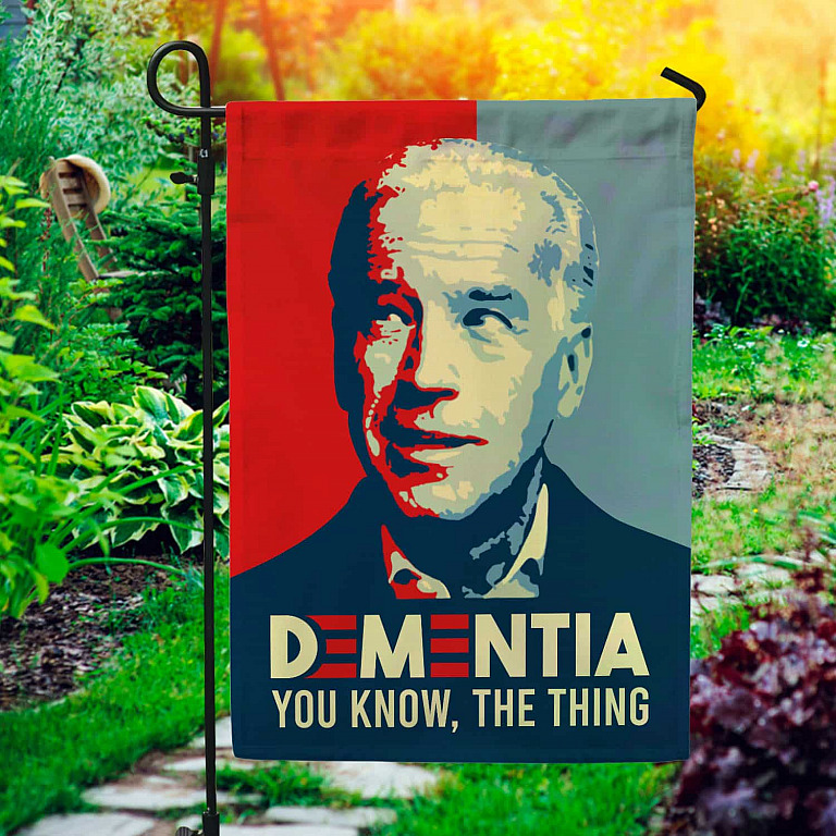 Let’s Shop Dementia You Know The Thing Joe Biden Decorative Garden Flag – Indoor Outdoor Flag – House Flag!