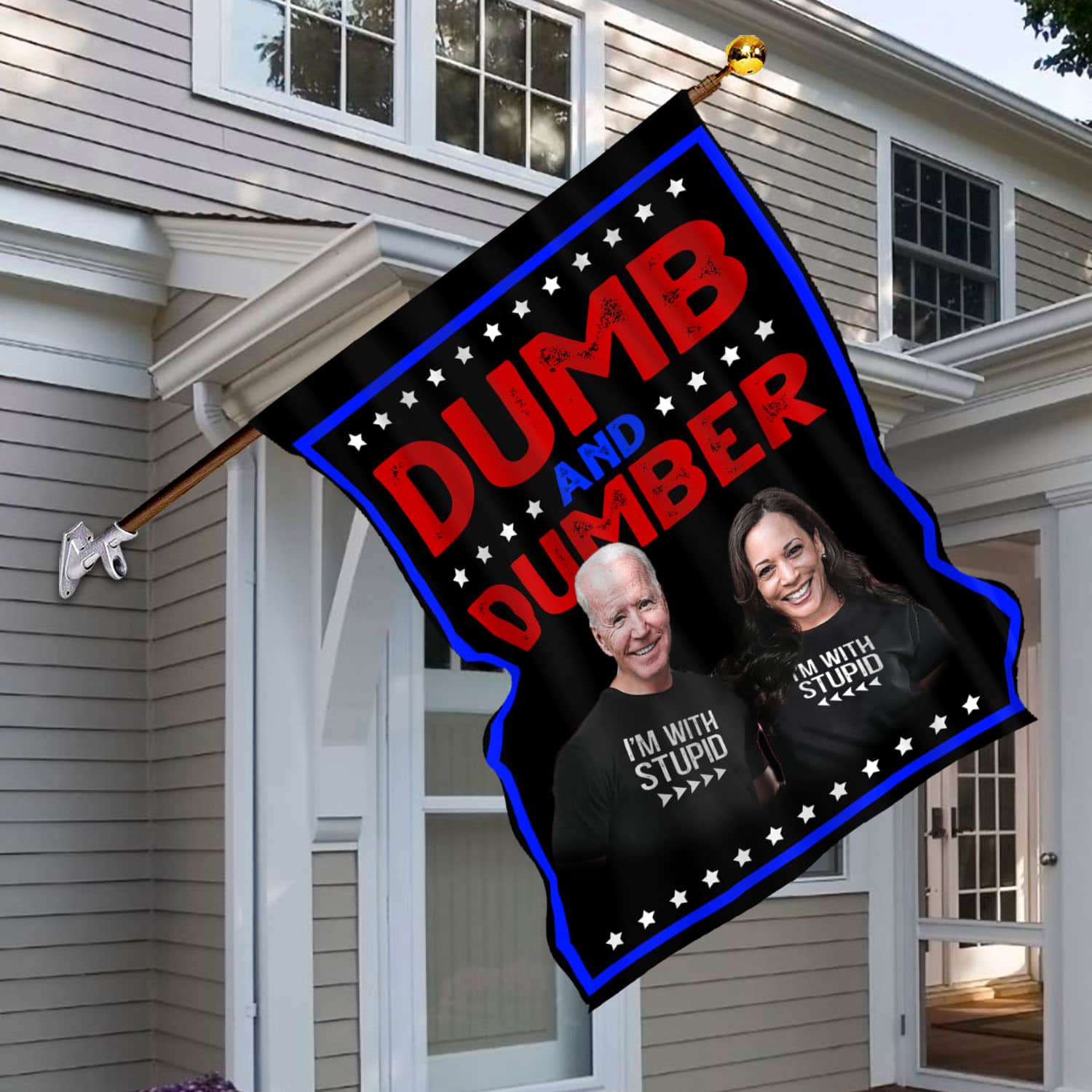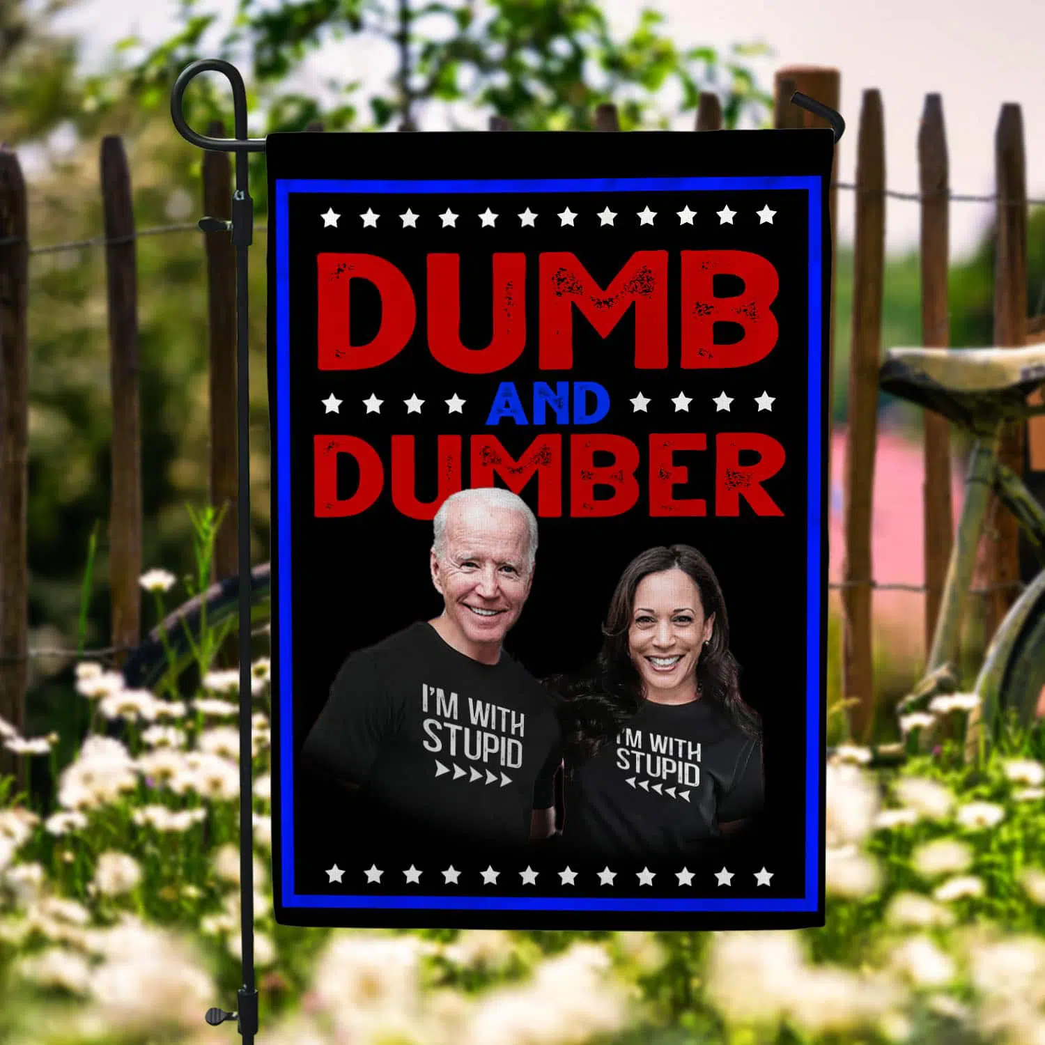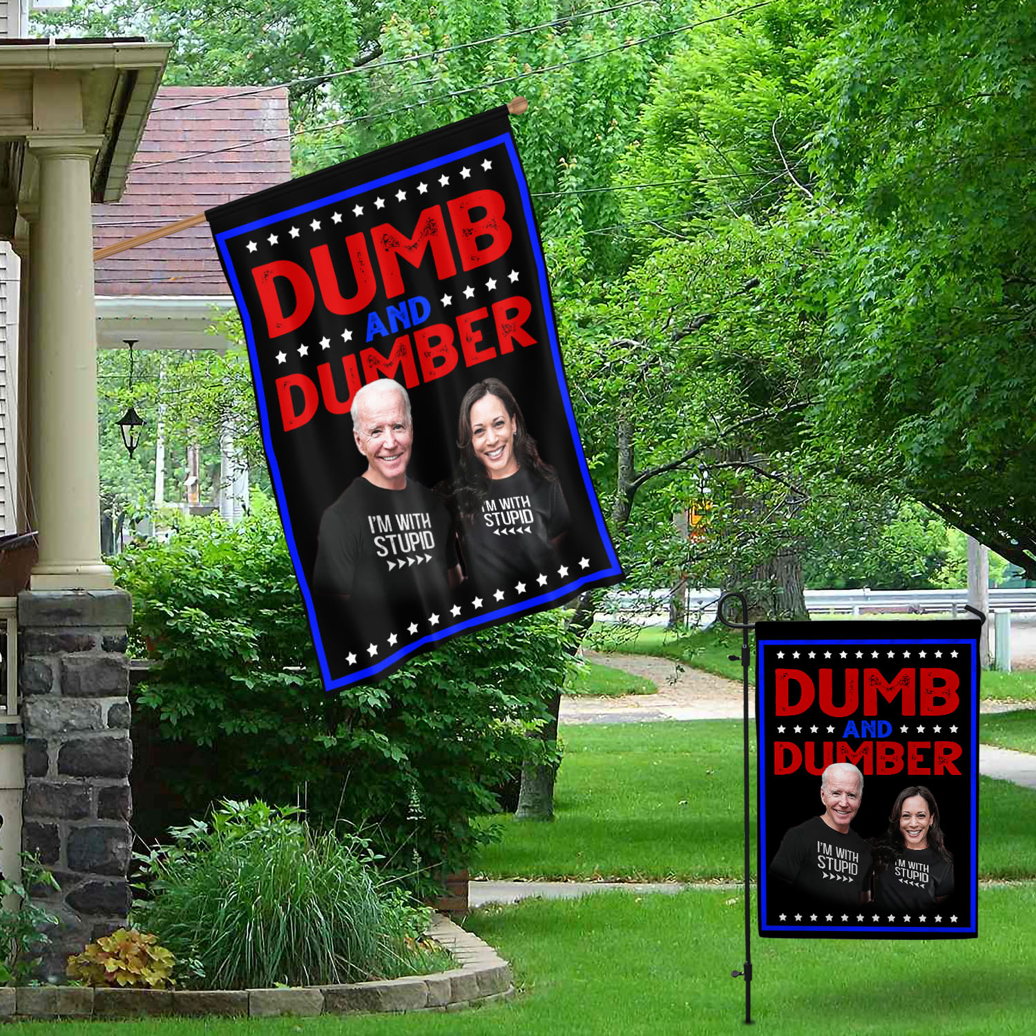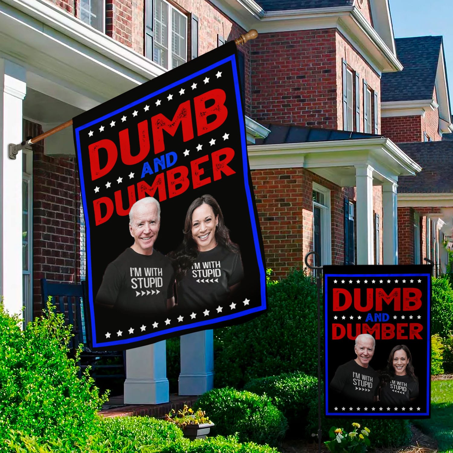 Let’s Shop Dumb And Dumber I’m With Stupid Anti Biden Harris Outdoor Indoor Garden Flag – House Flag – Wall Flag!