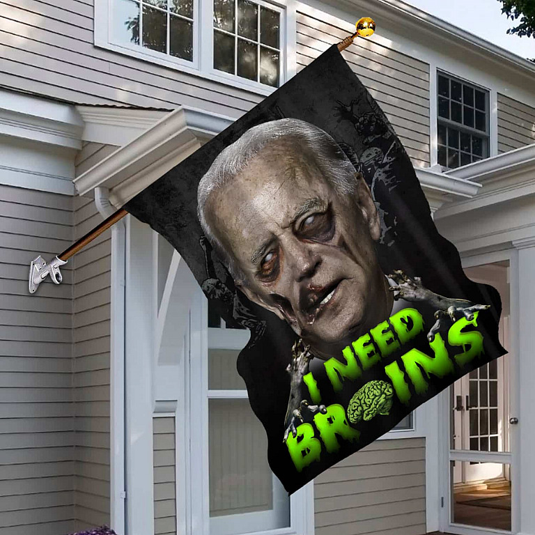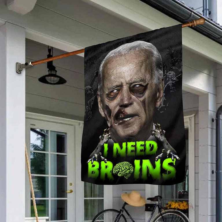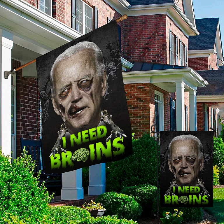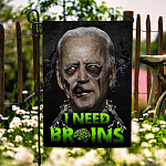 Let’s Shop Funny Halloween Zombie Joe Biden I Need Brains Outdoor Indoor Decorative Garden Flag – House Flag – Wall Flag!