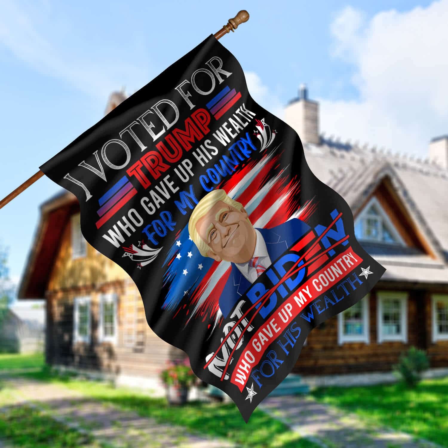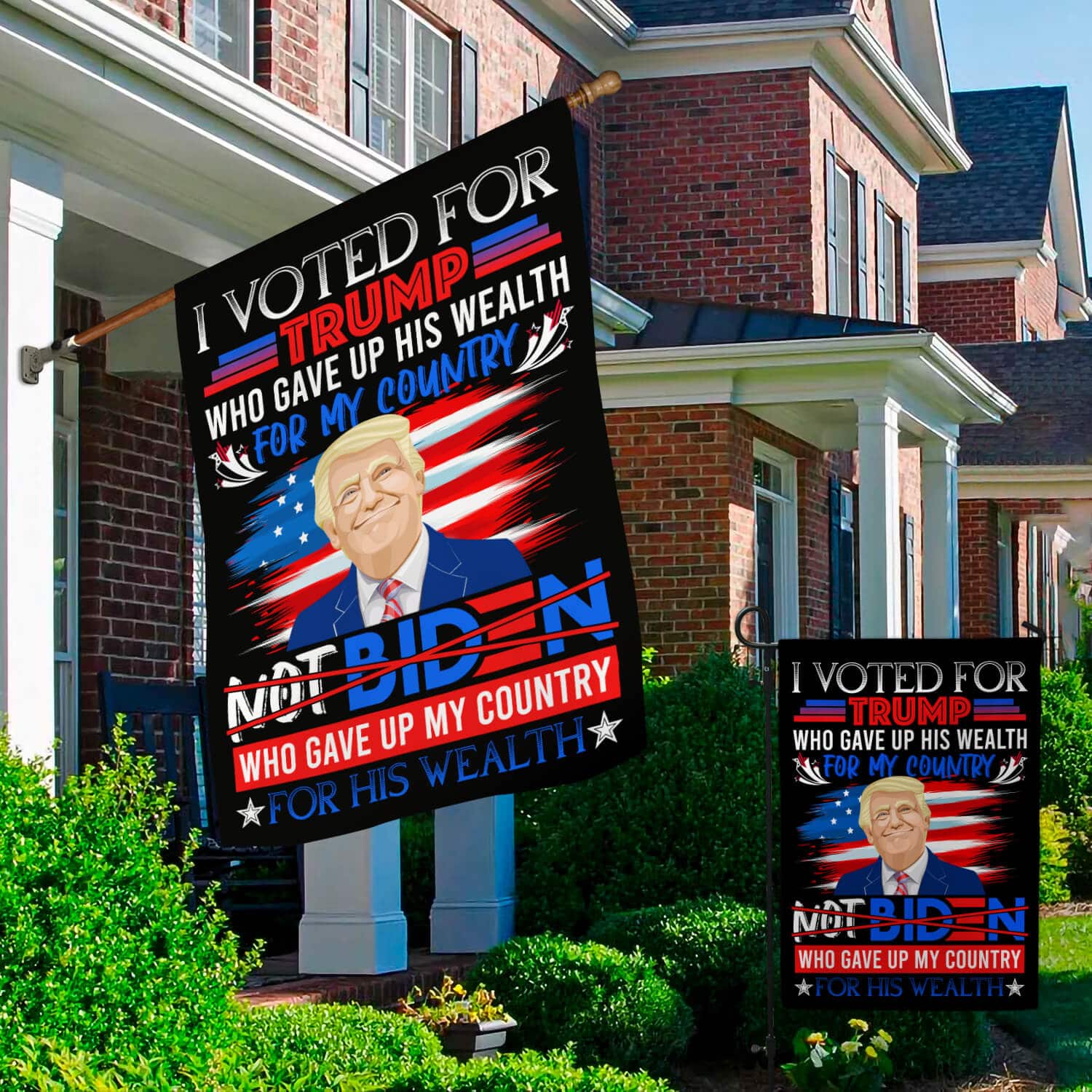 Let’s Shop I Vote For Trump Who Gave Up His Wealth For My Country Not Biden Garden Flag – Pro Trump House Flag!