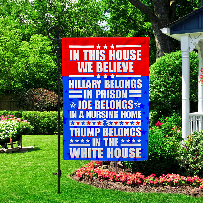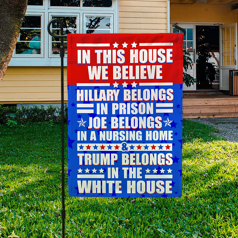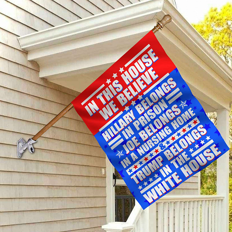 Let’s Shop In This House We Believe Hillary Belongs In Prison Joe Belongs In A Nursing Home Outdoor House Flag – Anti Biden Home Garden Flag!