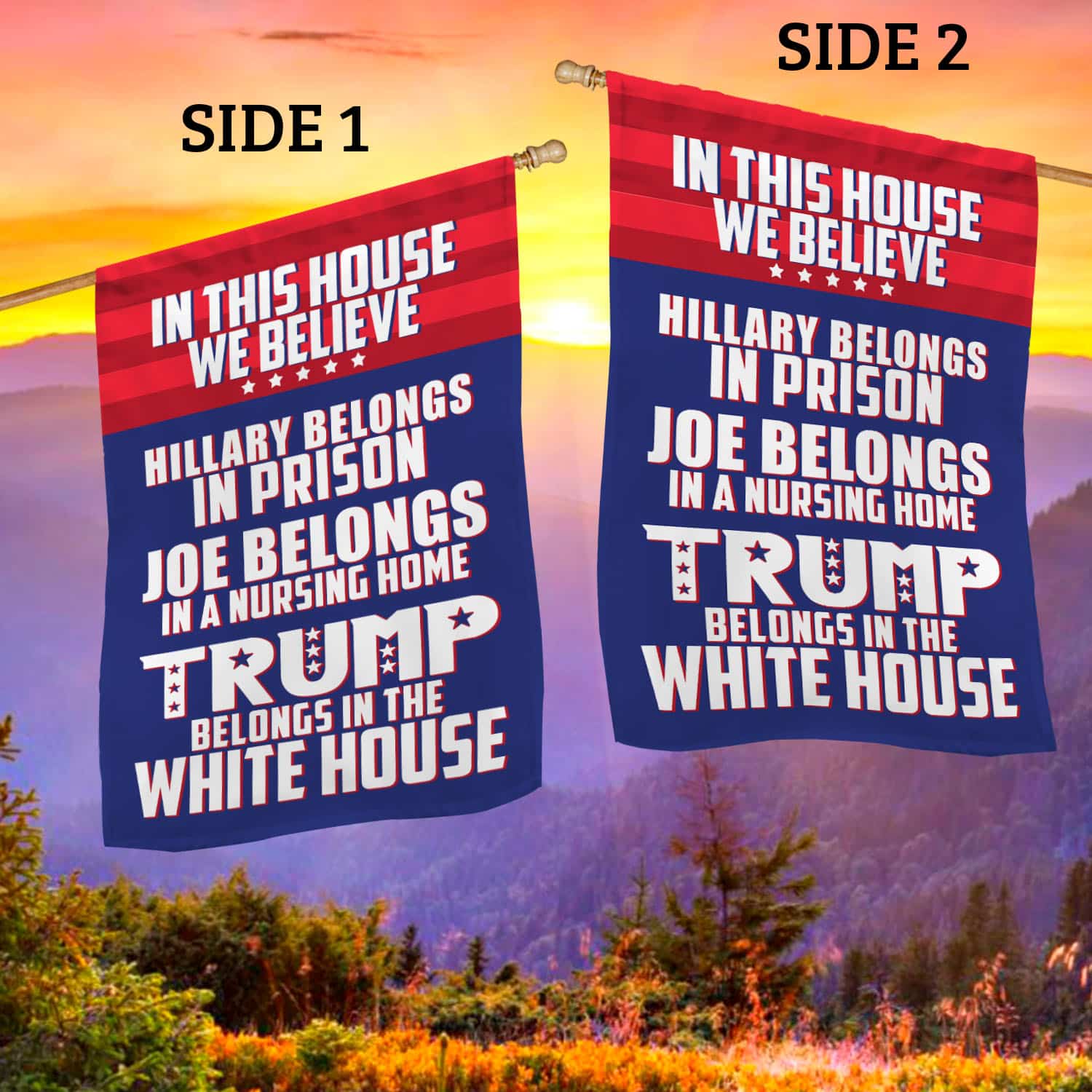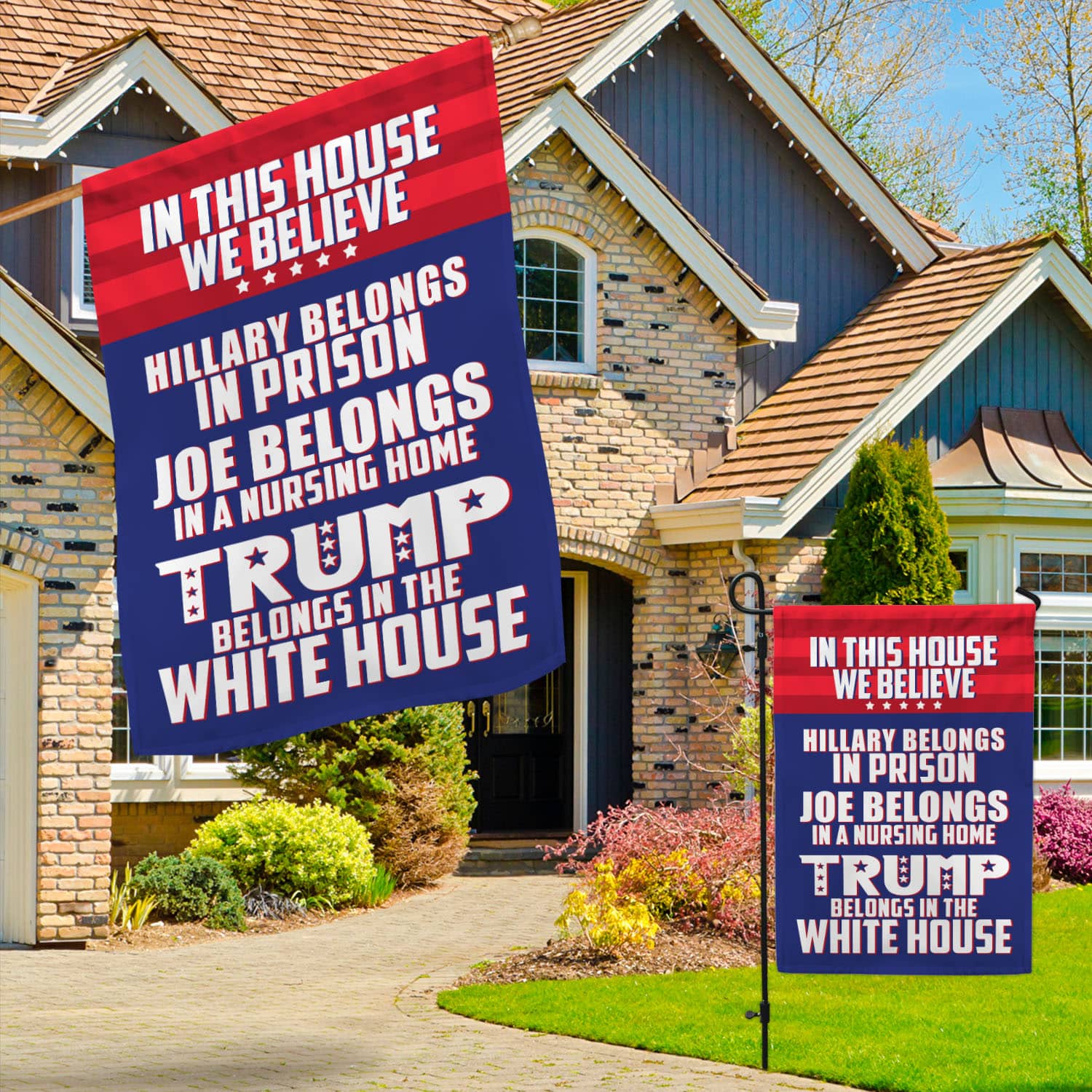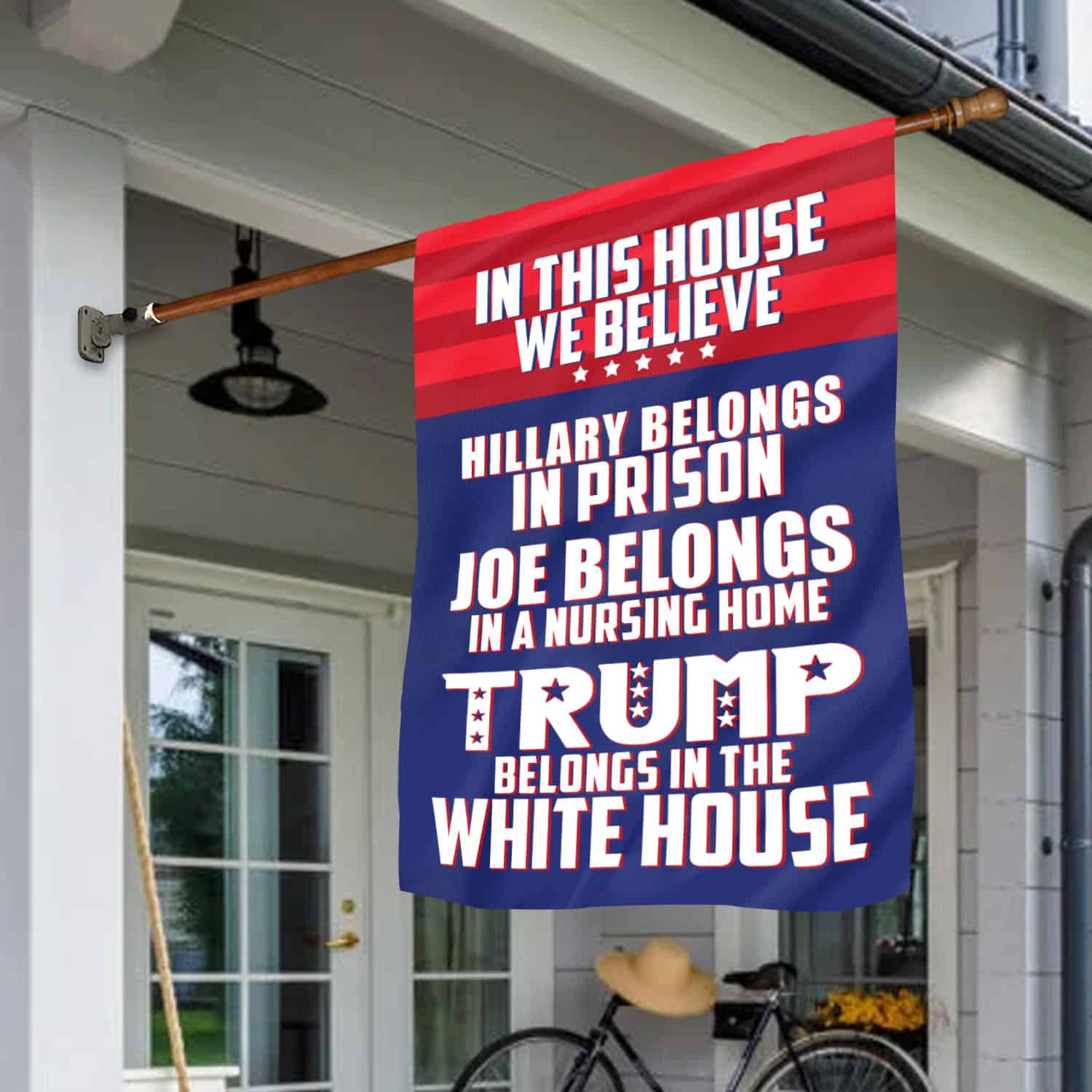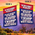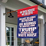 Let’s Shop In This House We Believe Hillary Belongs in Prison Outdoor Garden Flag – House Flag – Trump Supporter Flag!