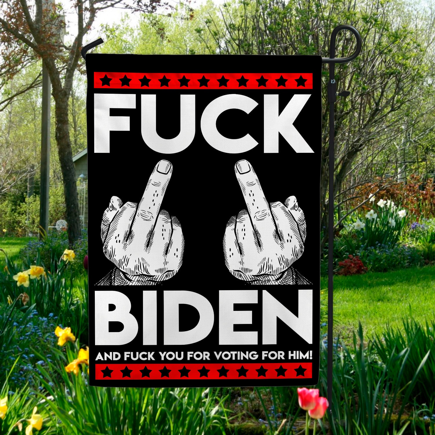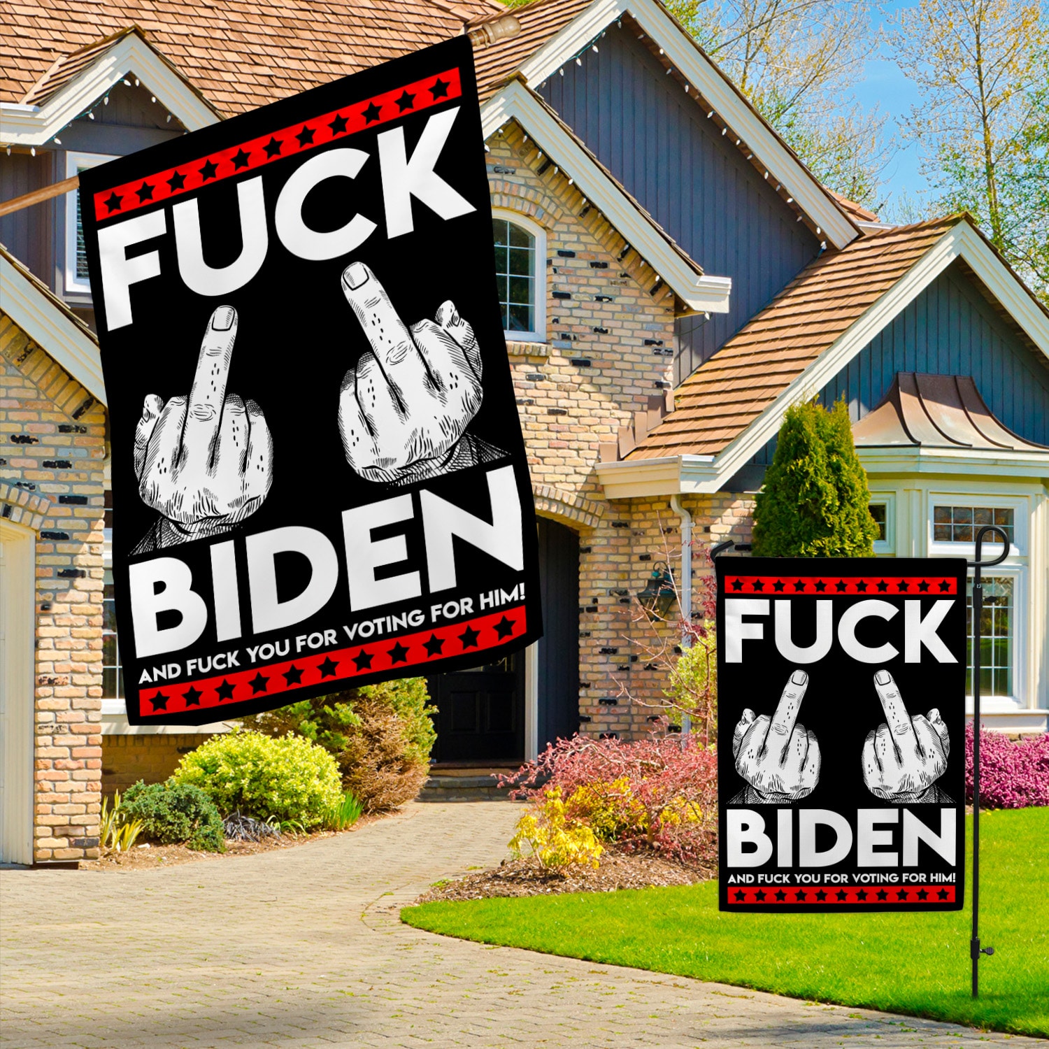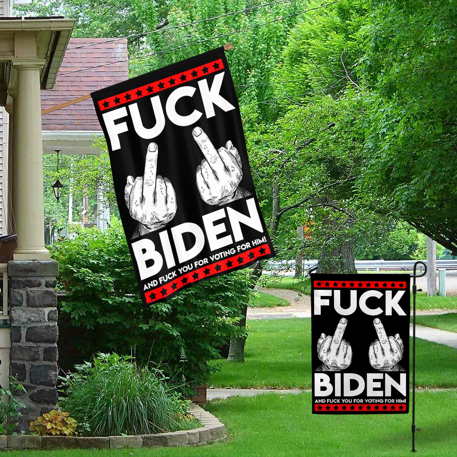 Let’s Shop Middle Finger Fck Biden and Fck You for Voting Him House Flag – Funny Election Garden Flag!
