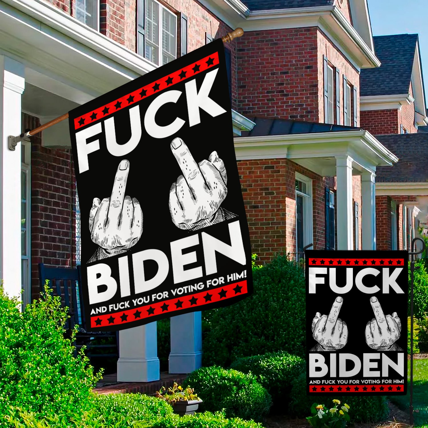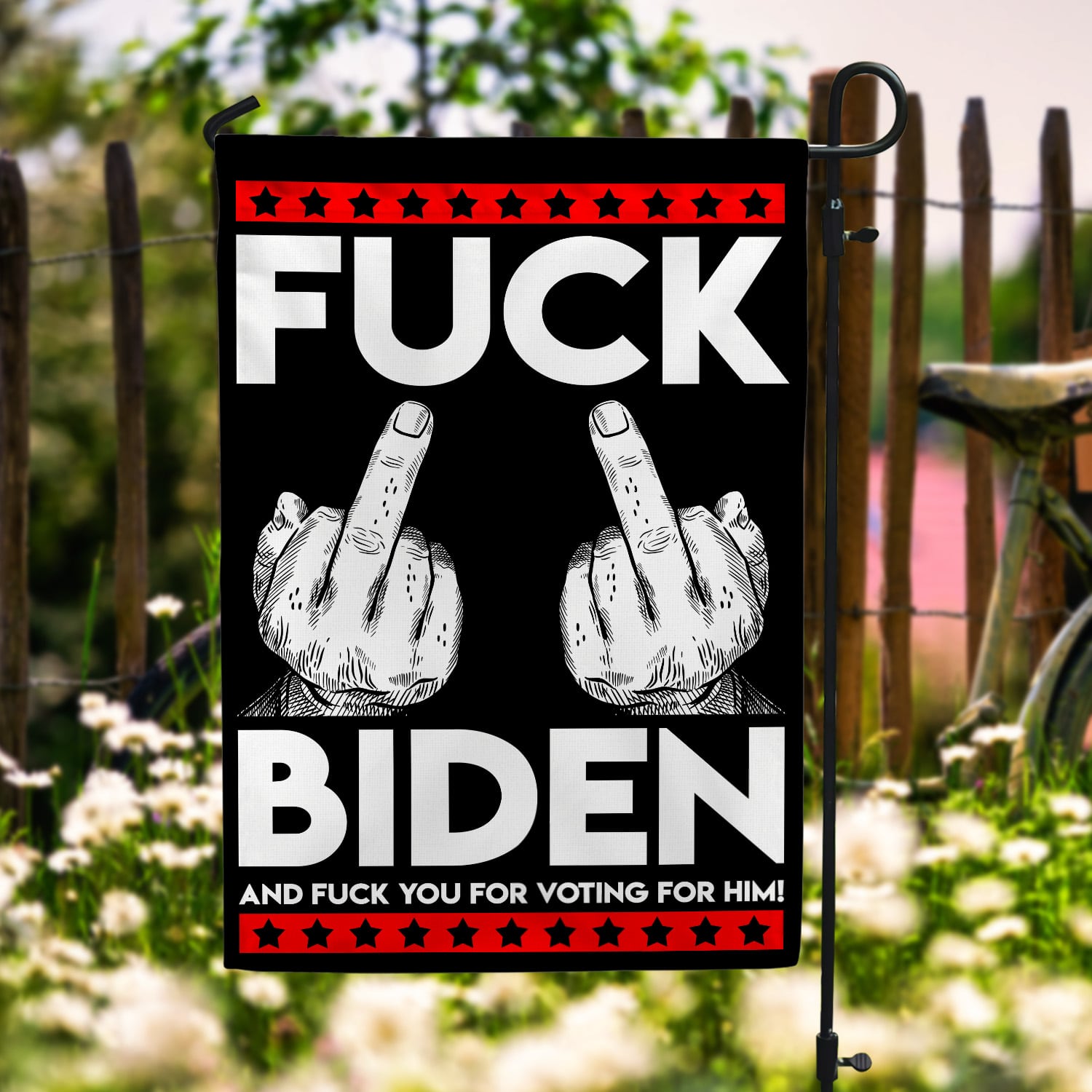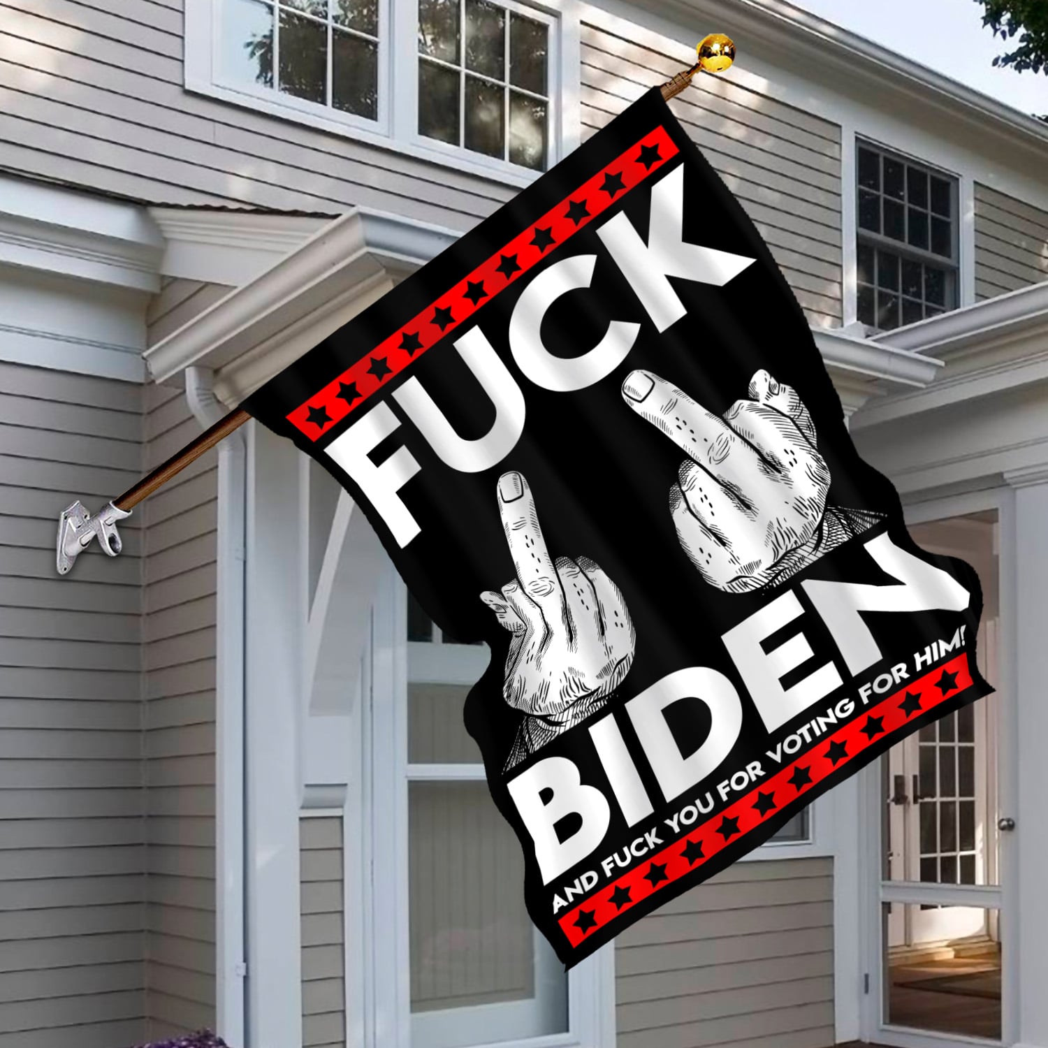 Let’s Shop Middle Finger Fck Biden and Fck You for Voting Him House Flag – Funny Election Garden Flag!