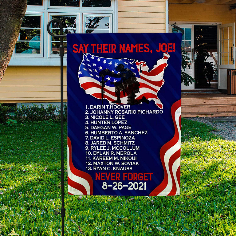 Let’s Shop Say Their Names Joe Names Of Fallen Soldiers 13 Heroes Garden Flag – Biden Has Blood On His Hands Flag!