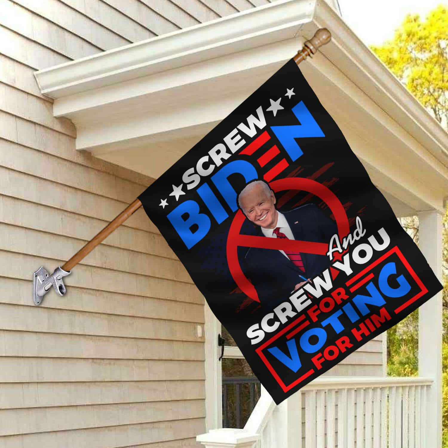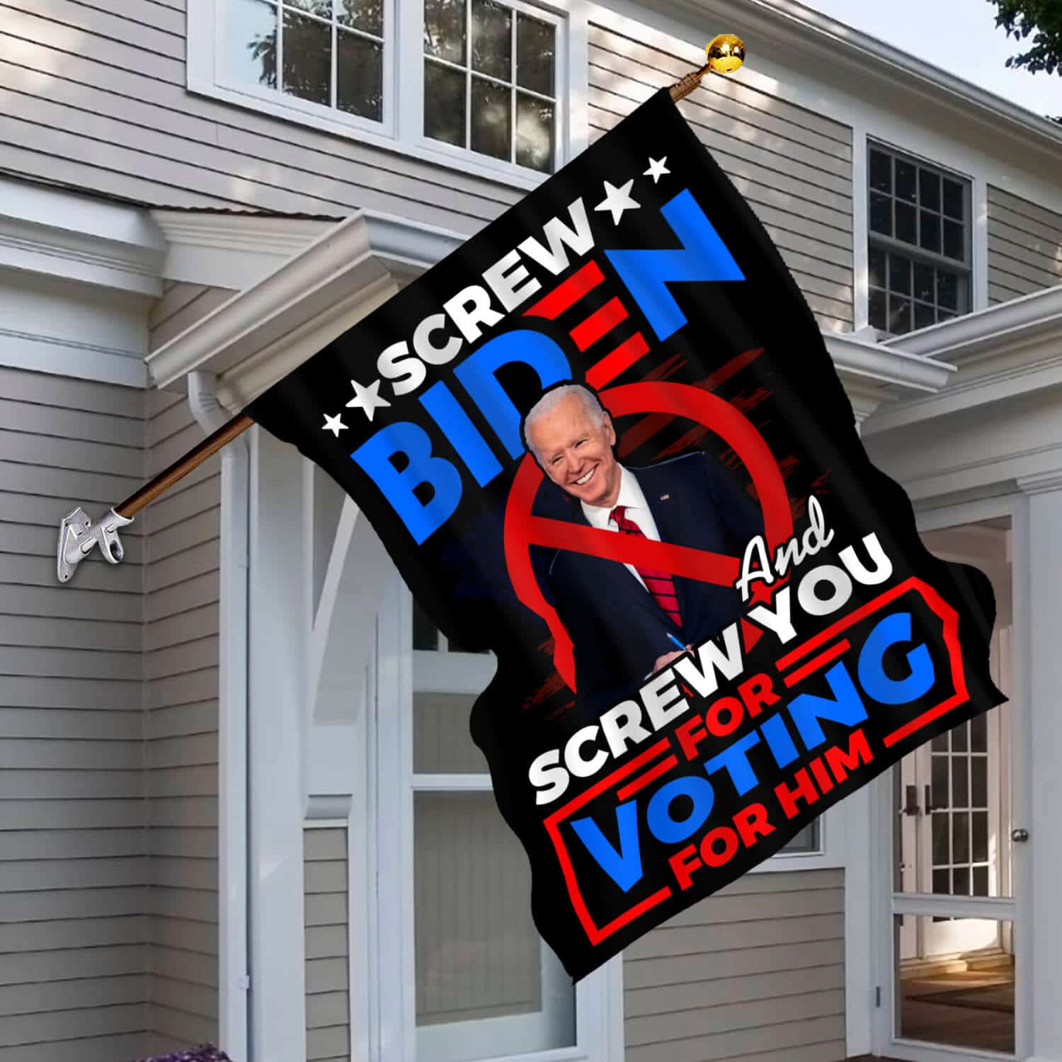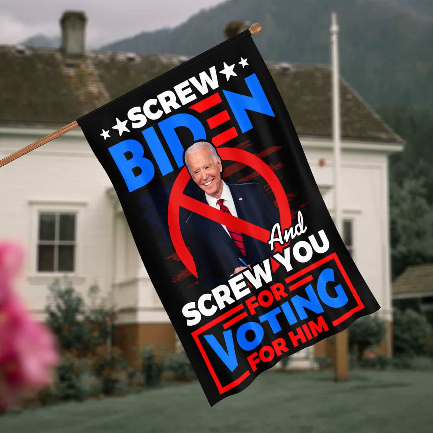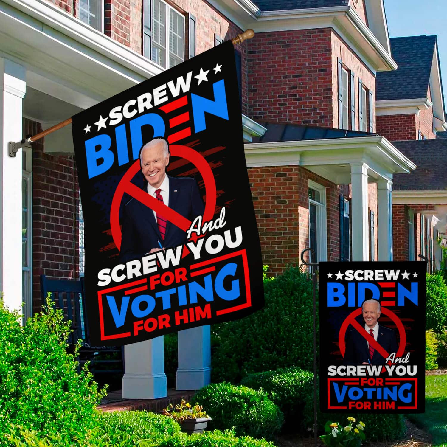 Let’s Shop Screw Biden And Screw You Vote For Him Garden Flag – Anti Biden Is An Idiot House Flag – Wall Flag!