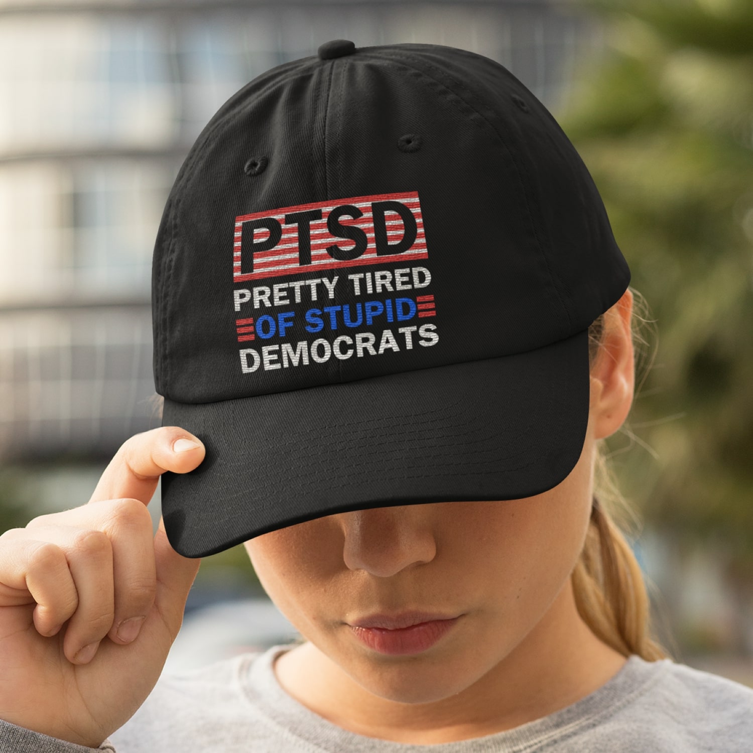 Let’s Shop Ptsd Pretty Tired of Stupid Democrats Anti Biden Twill Cap – High-Profile Snapback Hat – Trucker Hat!