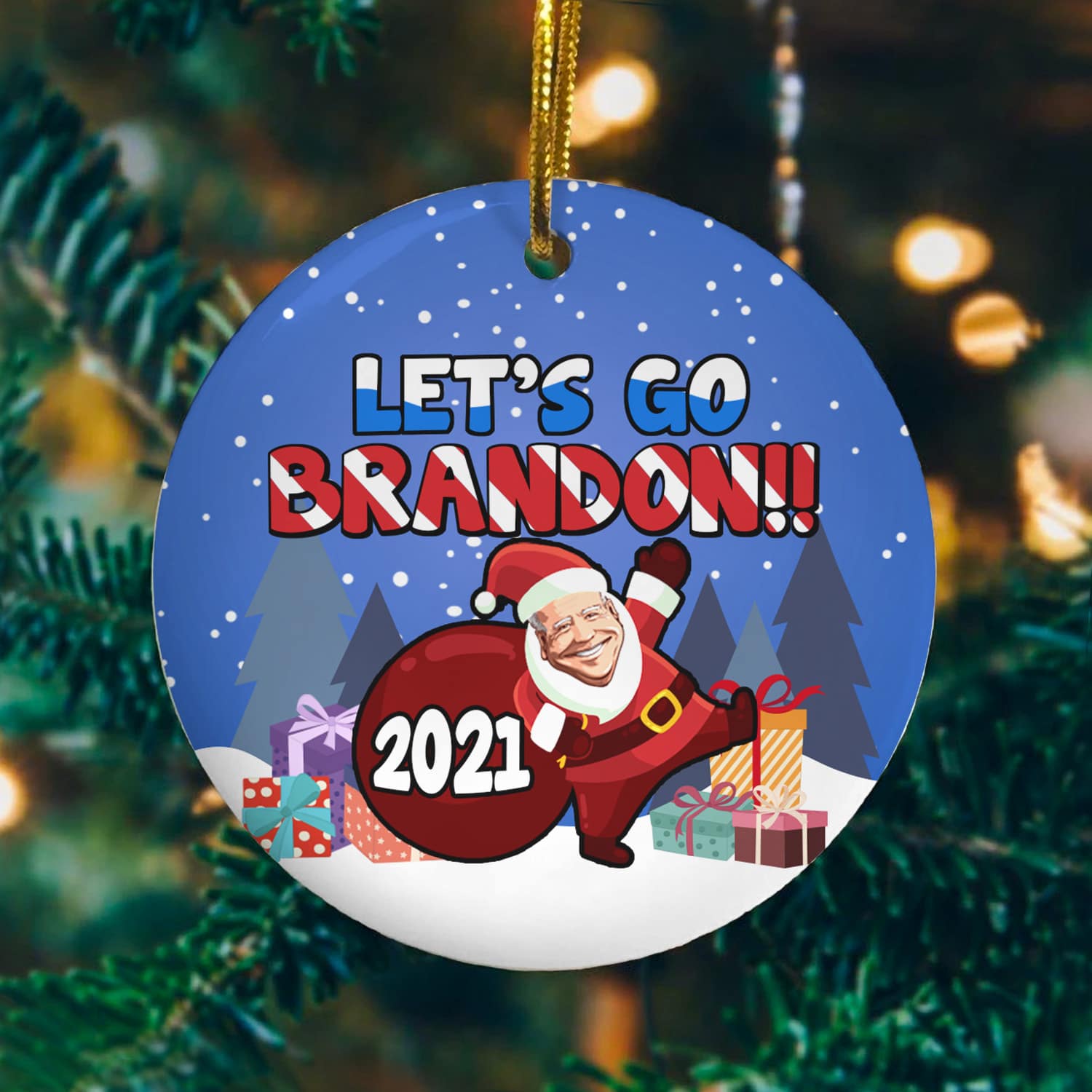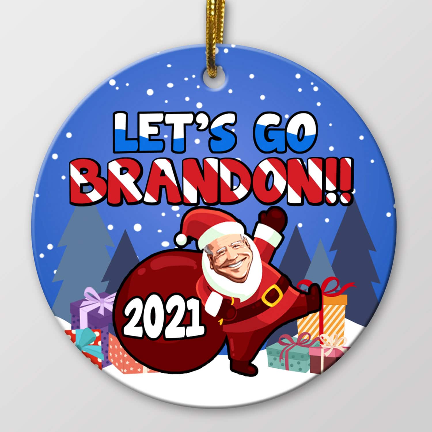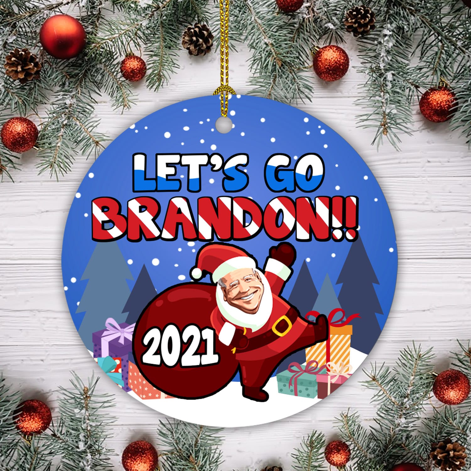 Let’s Shop Let’s Go Brandon 2021 Funny Santa Joe Christmas Xmas Circle Ornament!