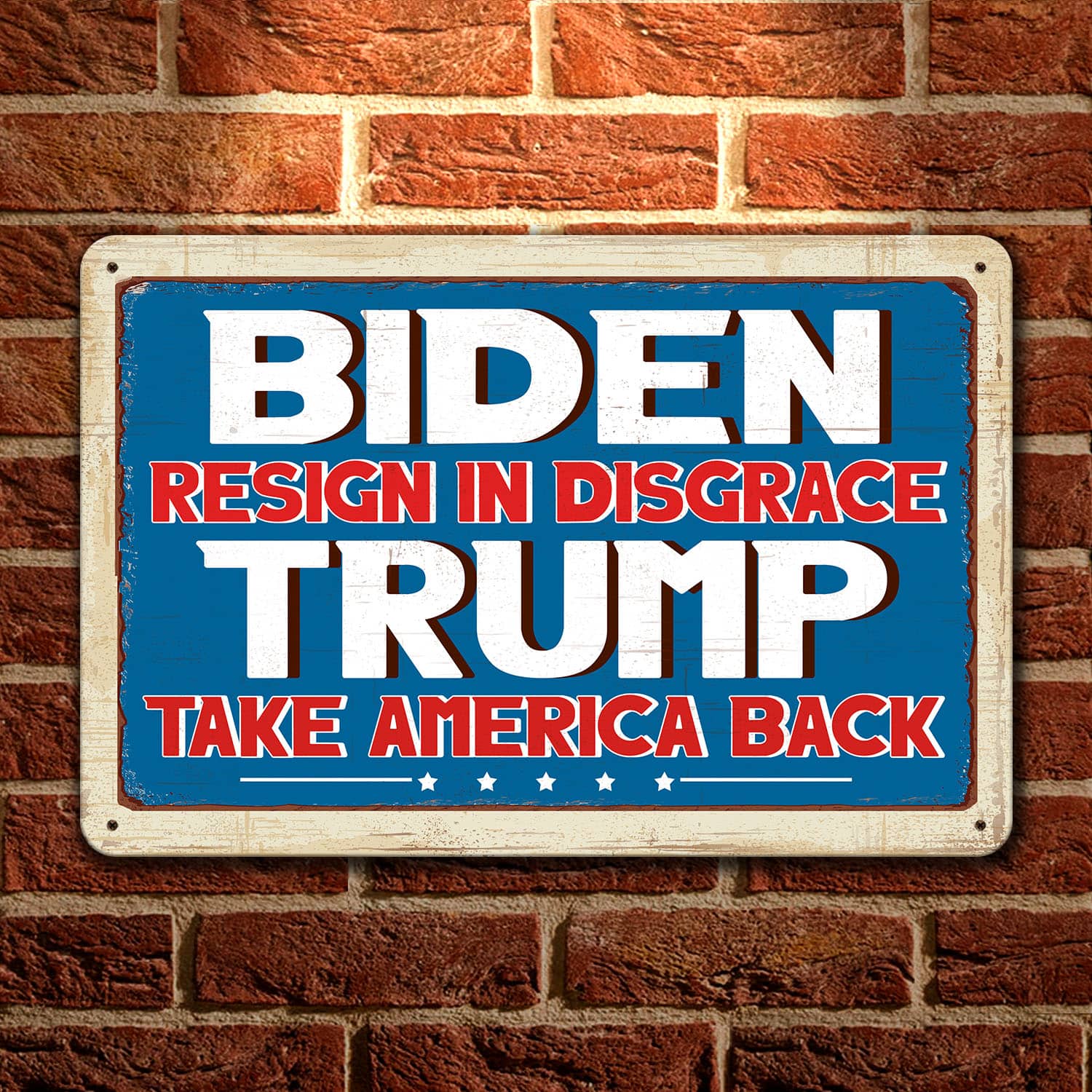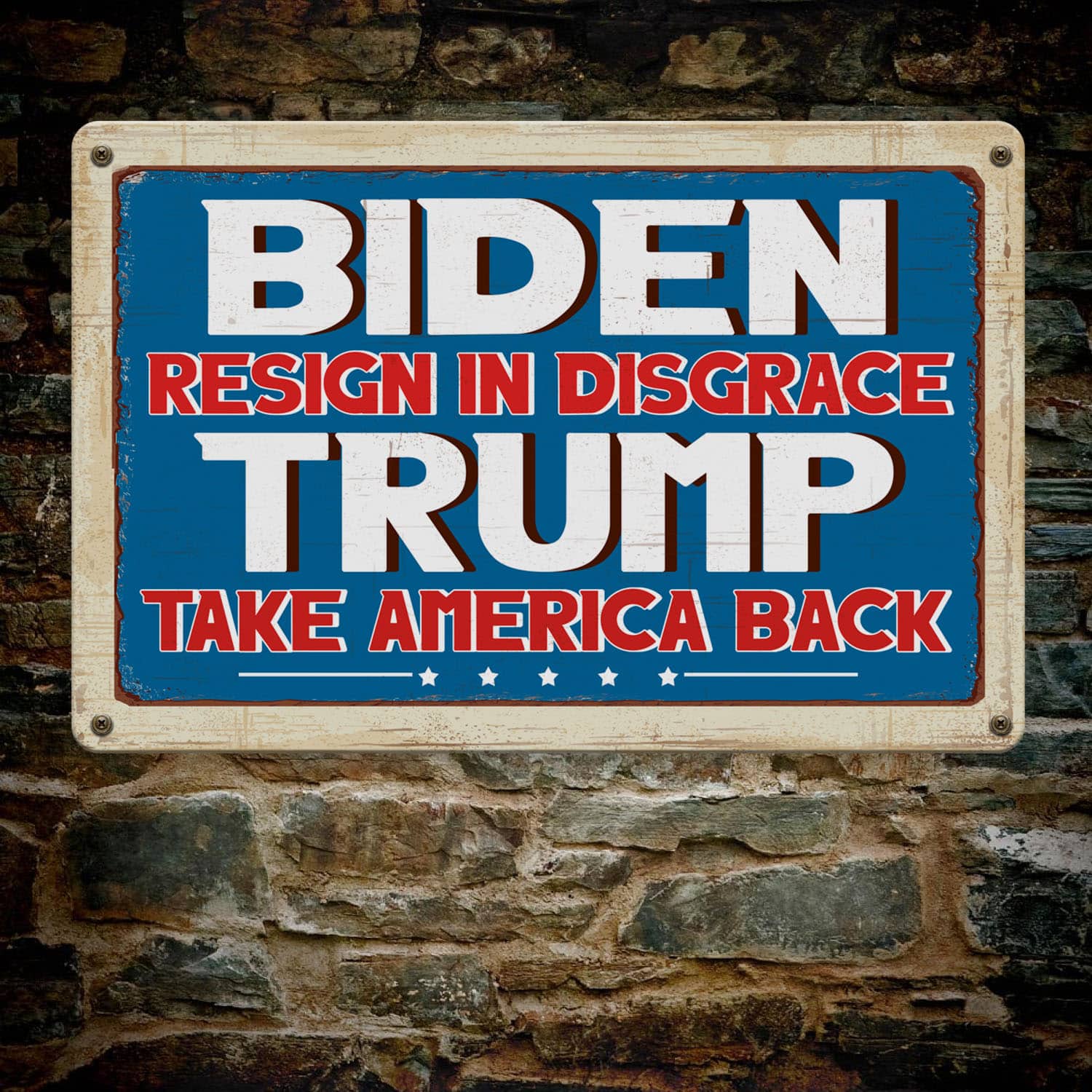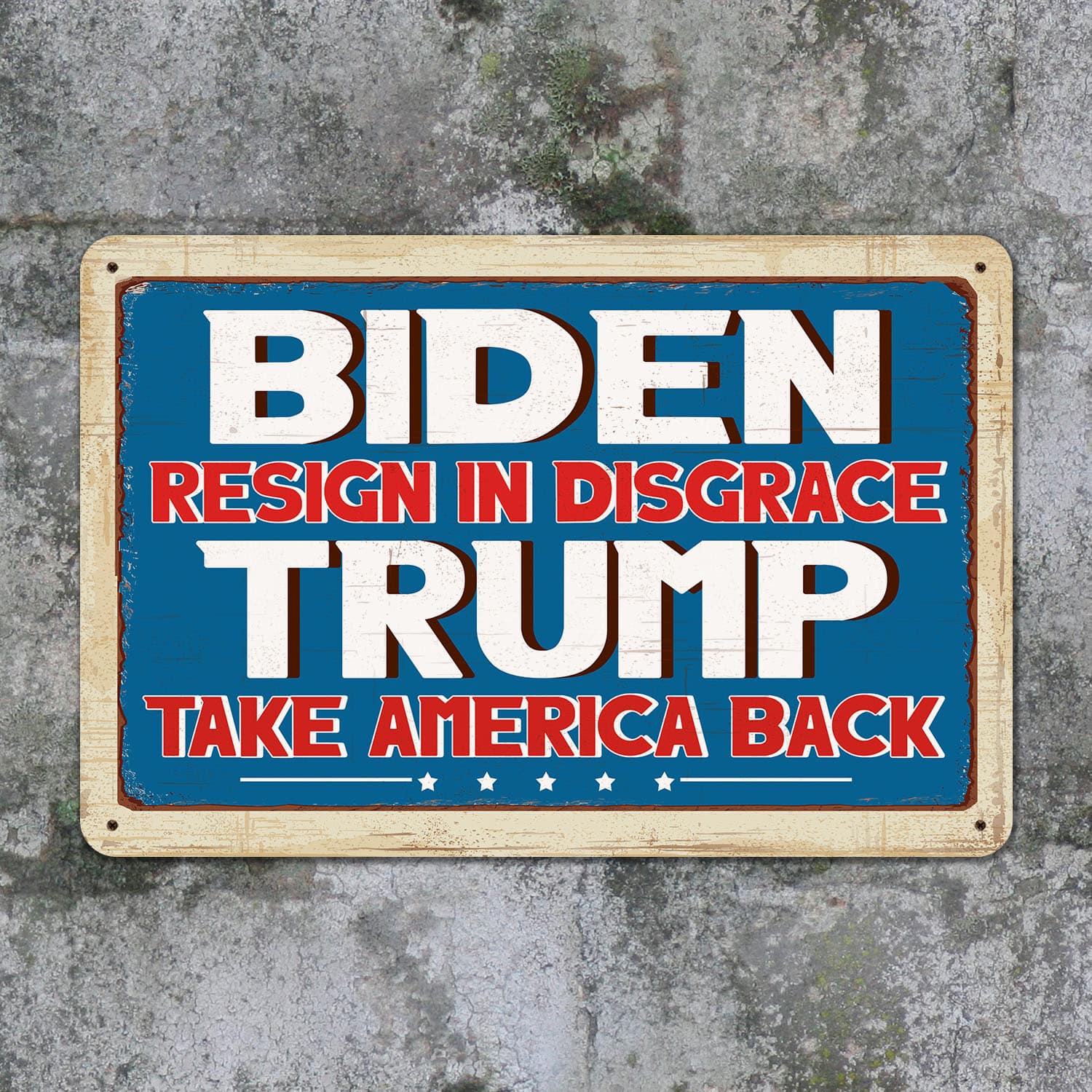 Let’s Shop Biden Resign In Disgrace Trump Take American Back Decorative Metal Sign – Indoor Outdoor Decor Farmhouse!