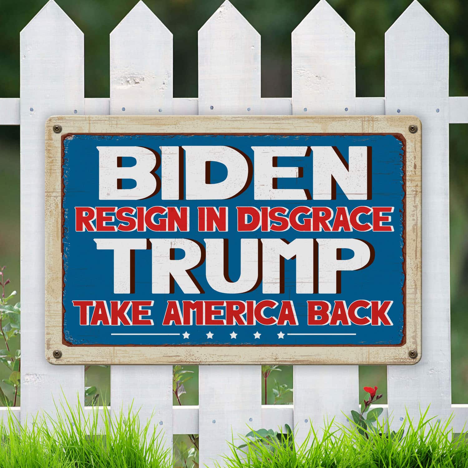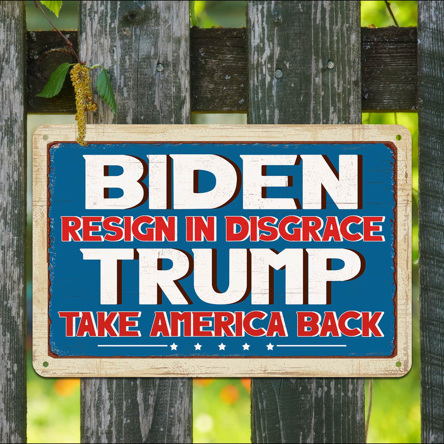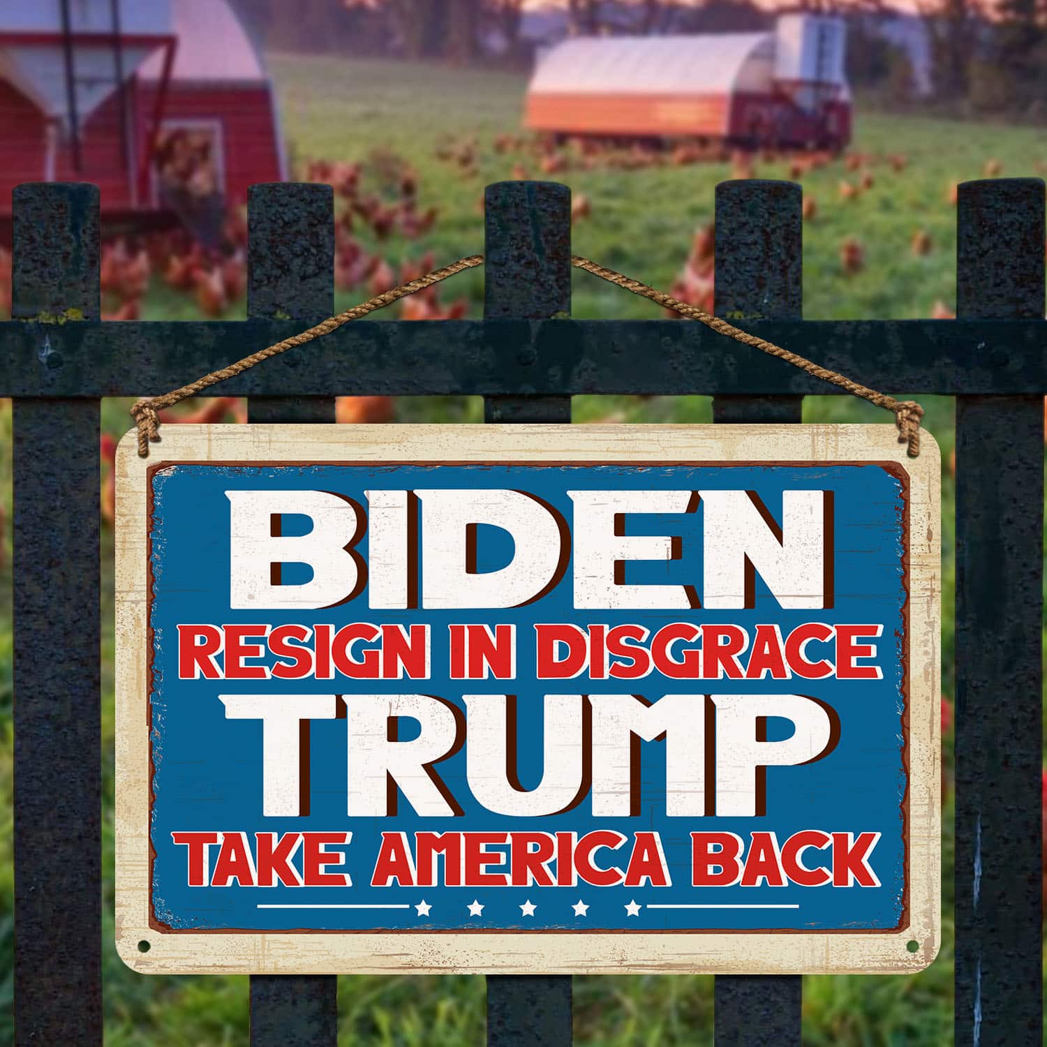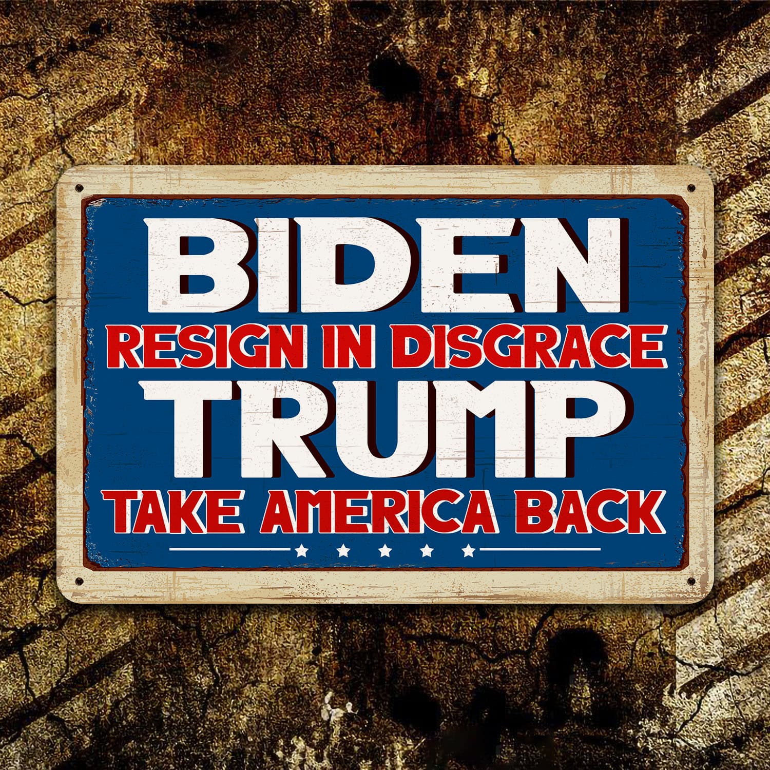 Let’s Shop Biden Resign In Disgrace Trump Take American Back Decorative Metal Sign – Indoor Outdoor Decor Farmhouse!