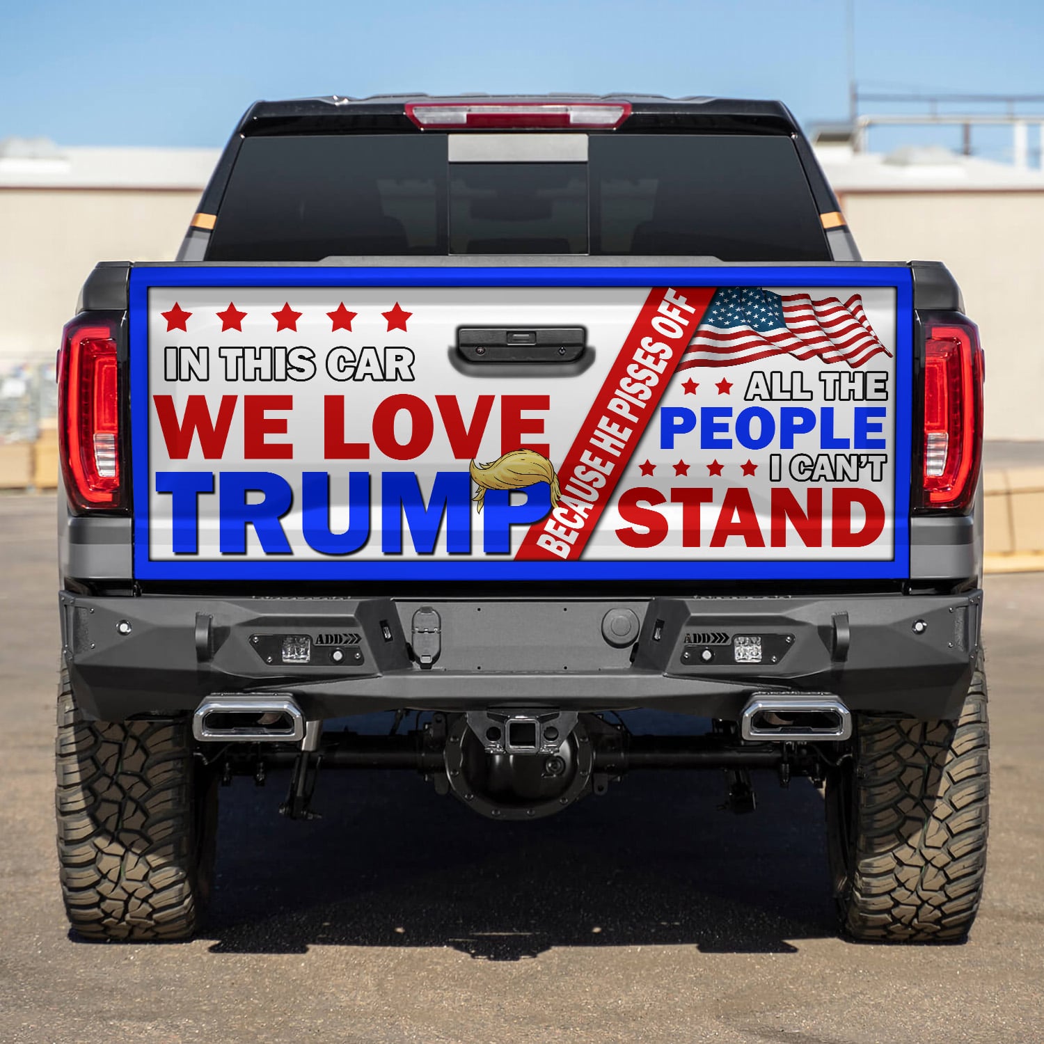 Let’s Shop In This Car We Love Trump Truck Tailgate Decal Sticker Wrap – Trump Pisses Of All The People I Can’t Stand Vinyl Graphic Decal Bumper Sticker!