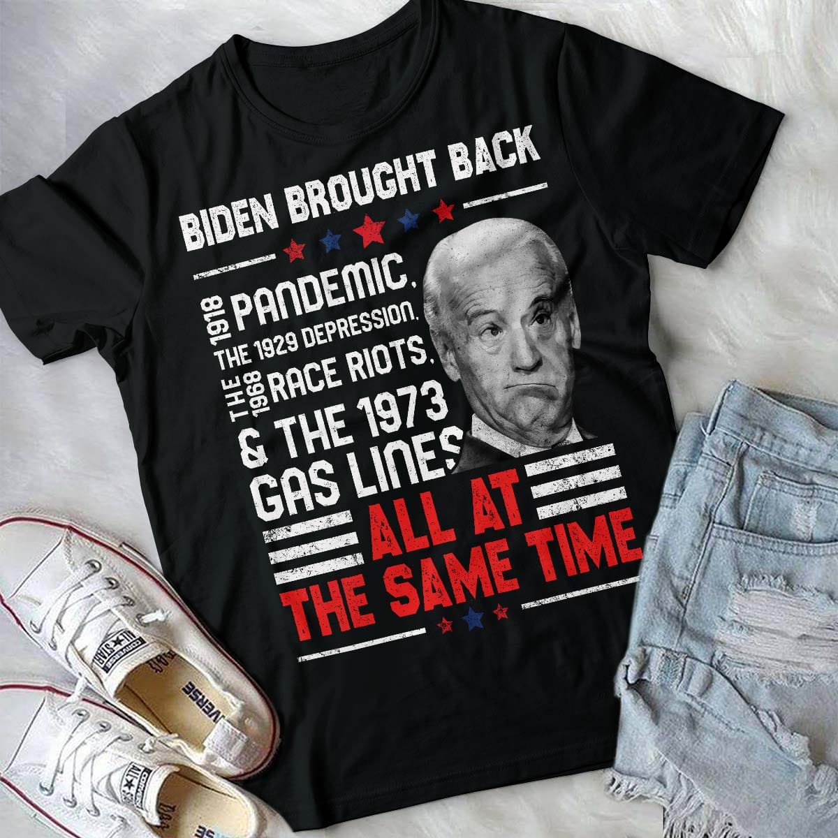 Let’s Shop Biden Brought Back 1918 Pandemic The 1929 Depression The 1968 Race Riots All At The Same Time Anti Biden T-Shirt!