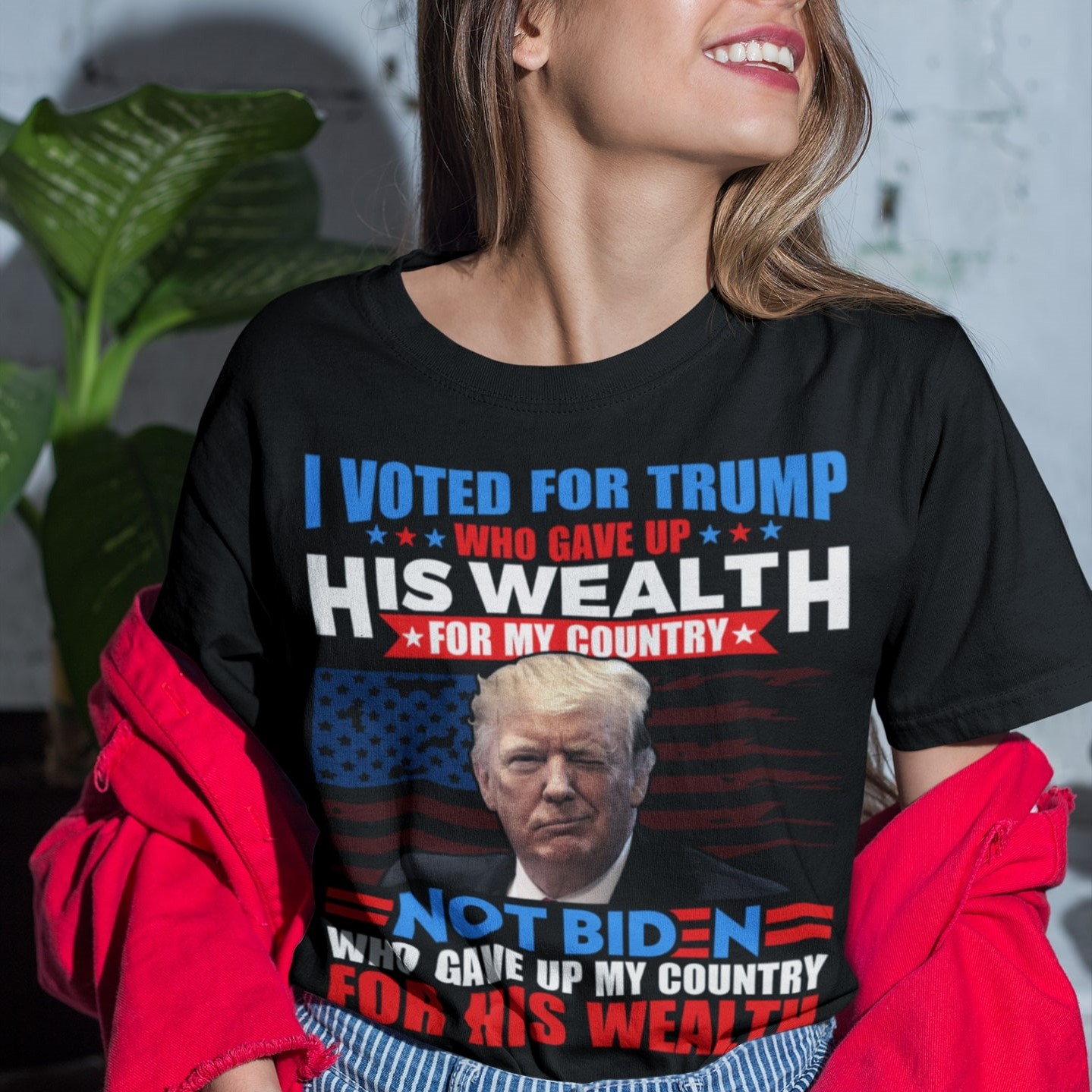 I Voted For Trump Who Gave Up His Wealth For My Country Not Biden Who Gave Up My Country Anti Biden T-Shirt