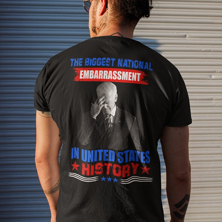 The Biggest National Embarrassment In United States History Anti Biden Print On Back T-Shirt Only