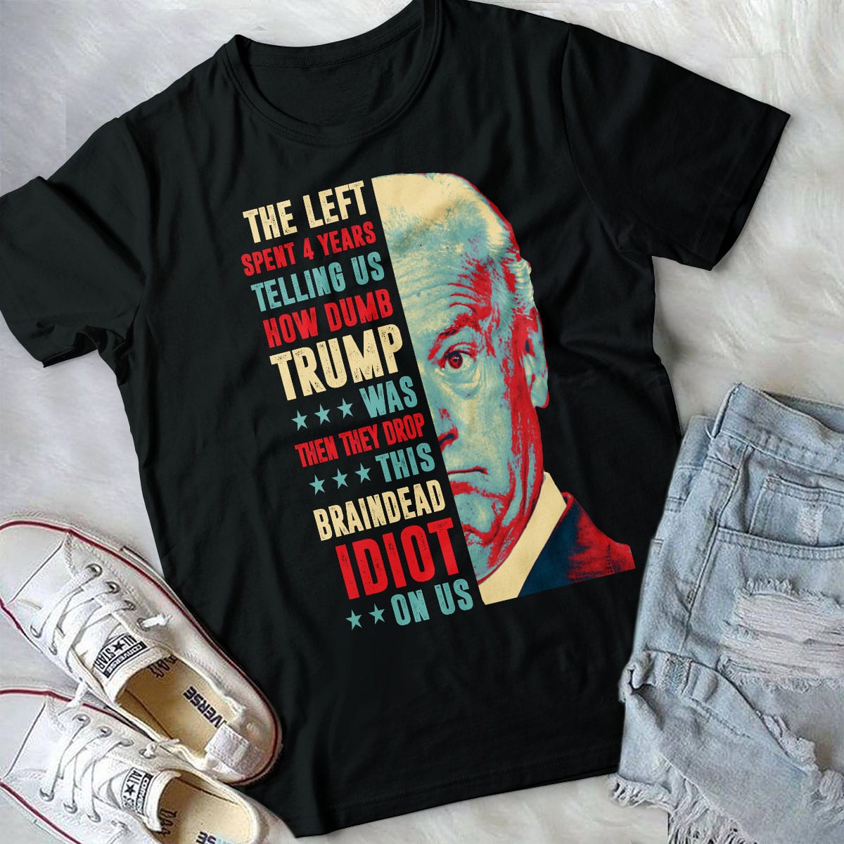 Let’s Shop The Left Spent 4 Years Telling Us How Dumb Trump Was Then They Drop This Braindead Idiot On Us Anti Biden T-Shirt!