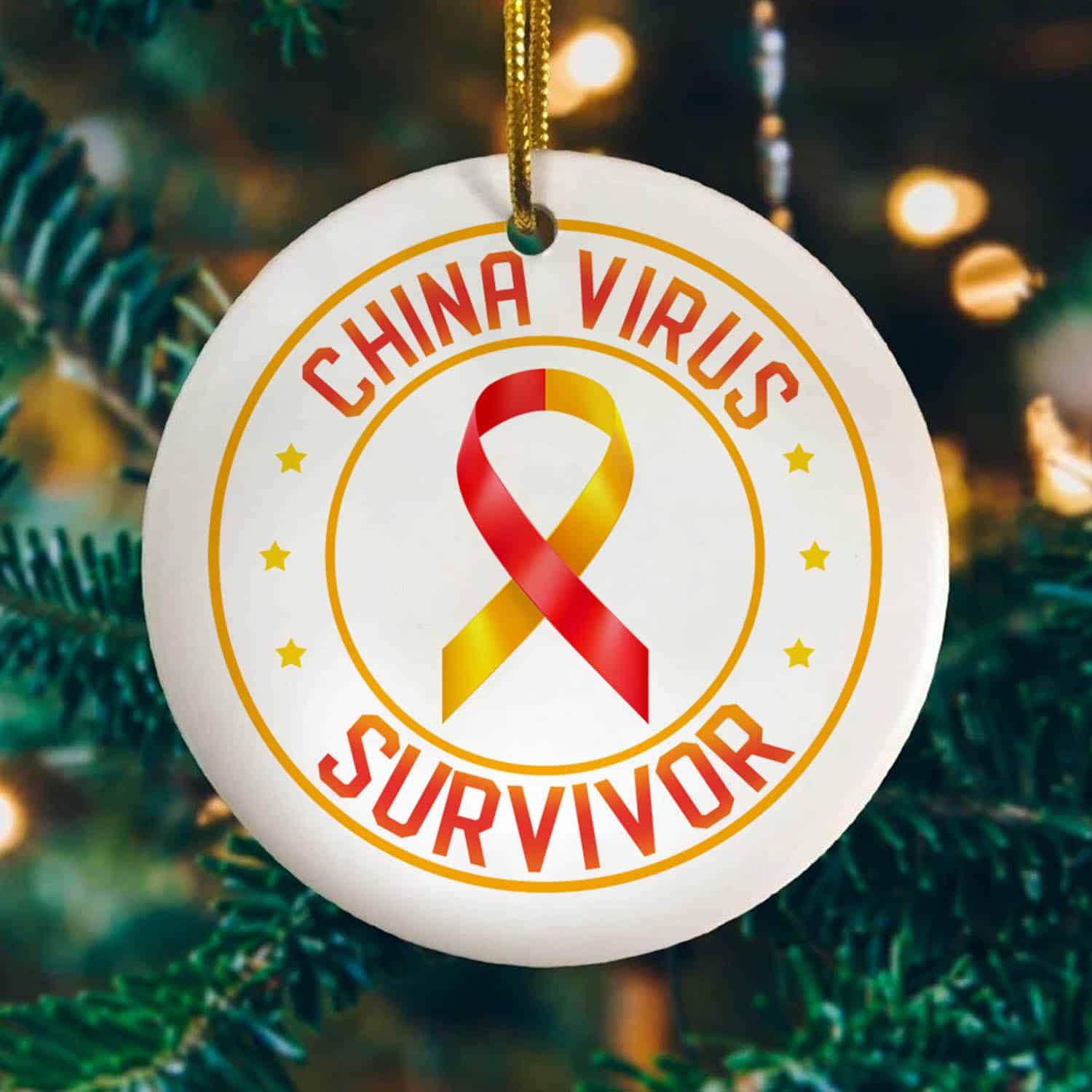 Let’s Shop China Virus Survivor Decorative Circle Ornament Keepsake – Funny Pandemic Survivor Ornament!