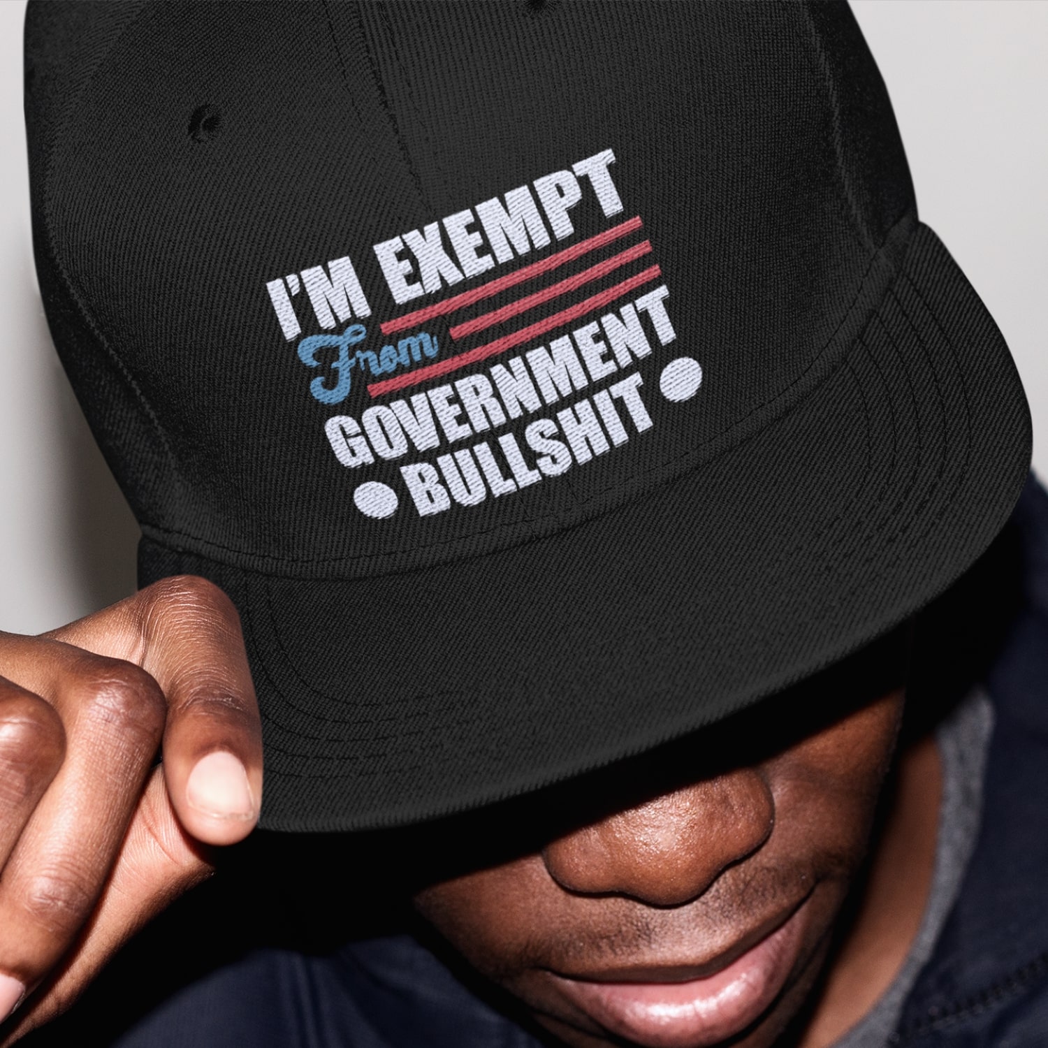 Let’s Shop I’m Exempt from Government Bullshit – Anti Government Twill Cap – High-Profile Snapback Hat – Trucker Hat!